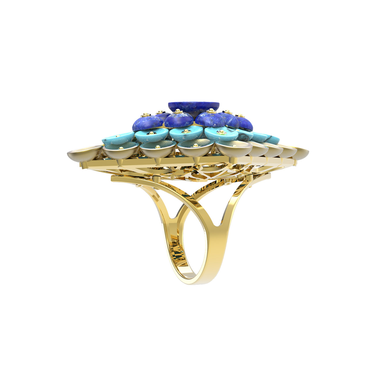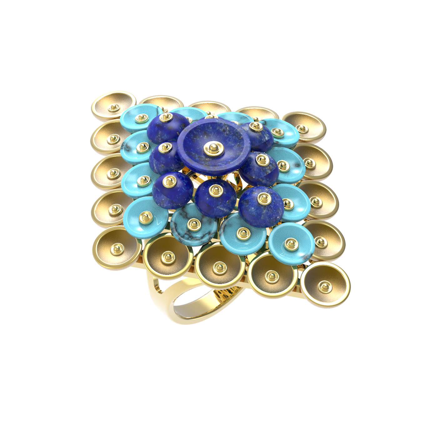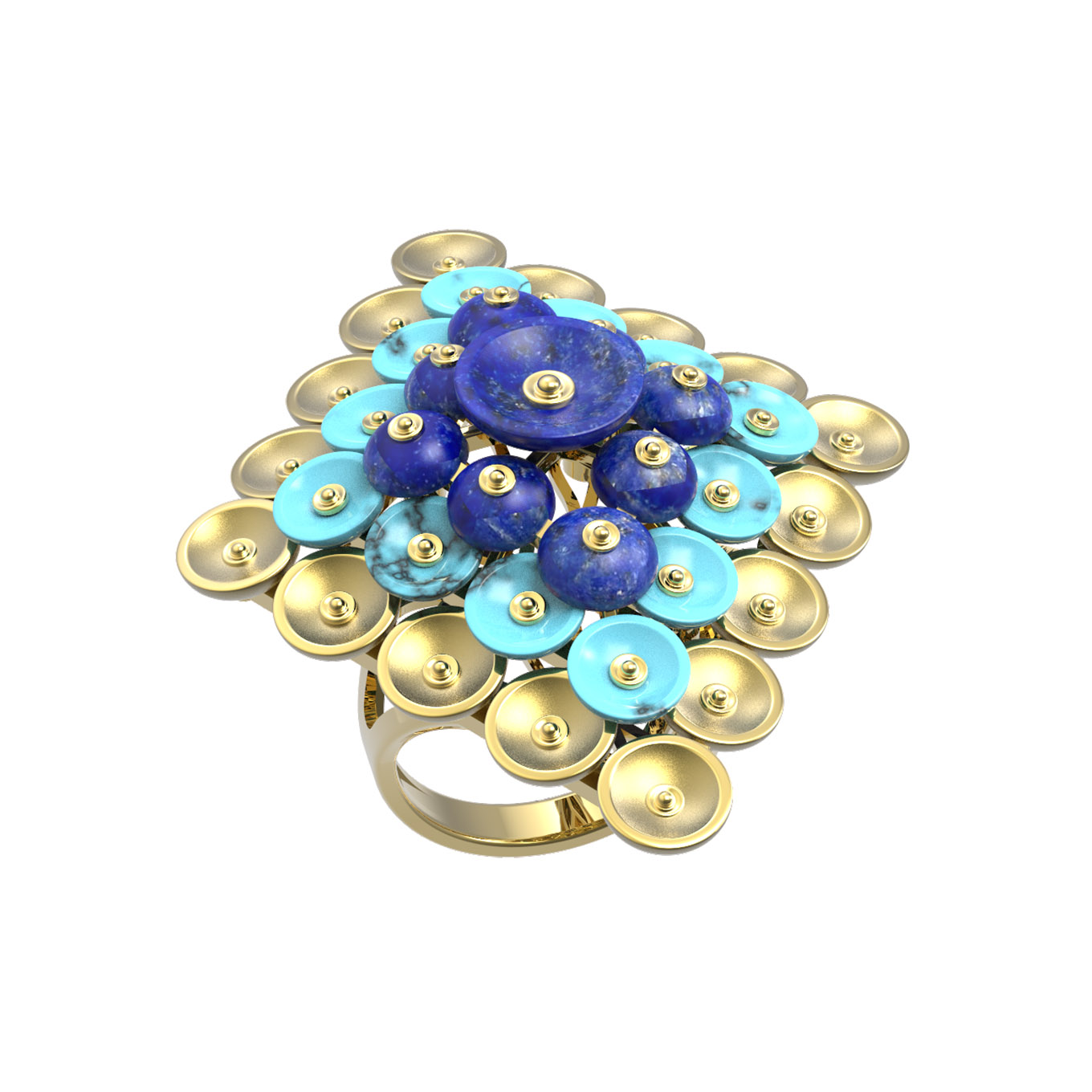 Кольцо из лимонного золота c бирюзой и лазуритом