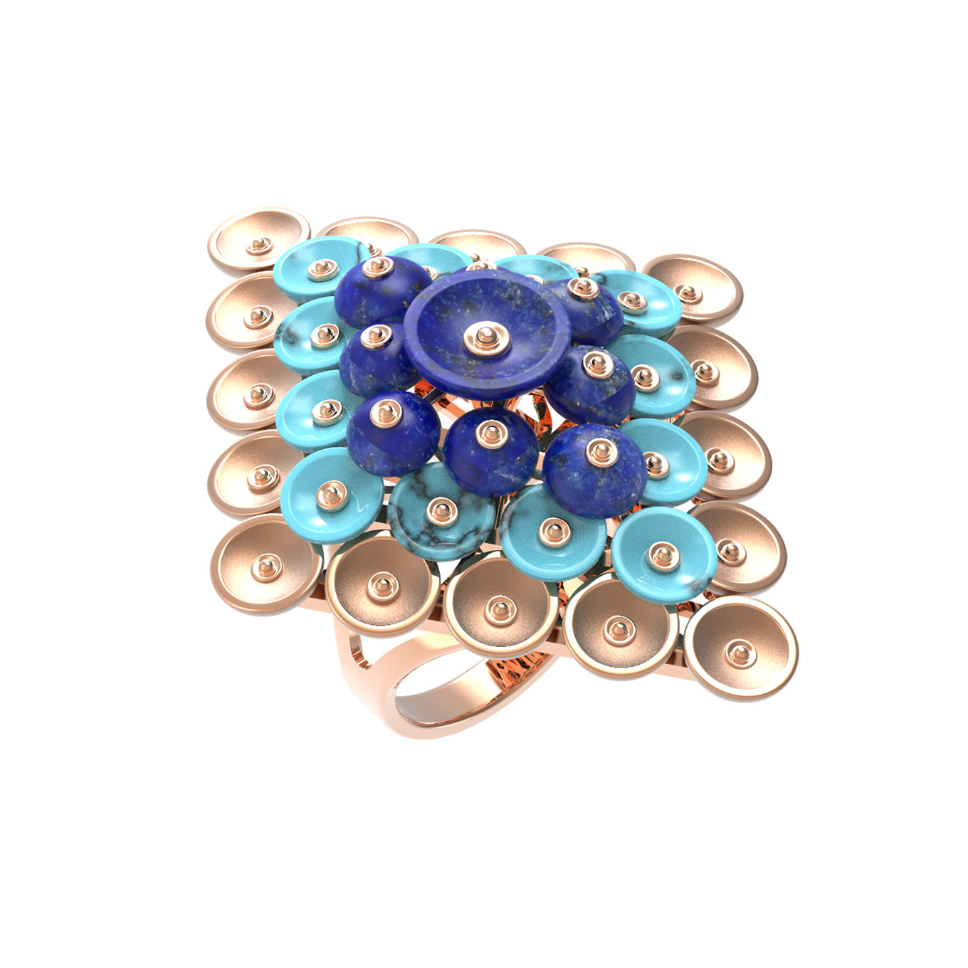 Кольцо из золота c бирюзой и лазуритом