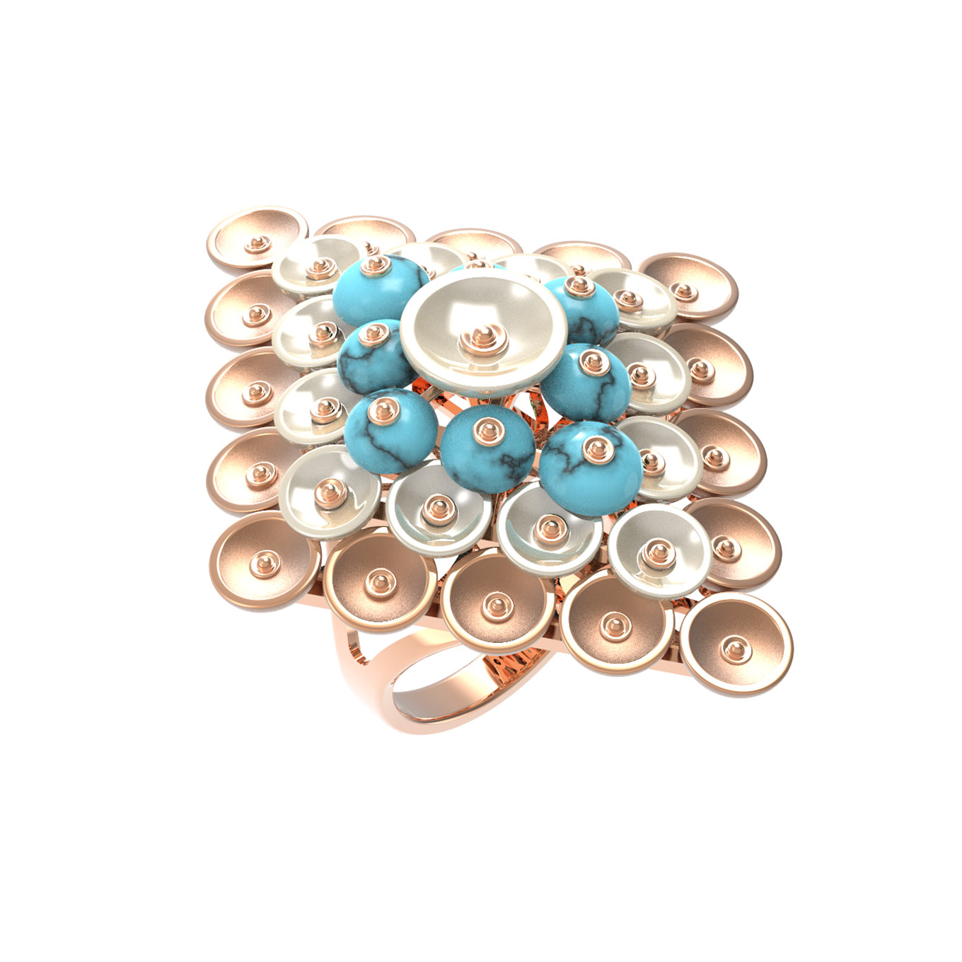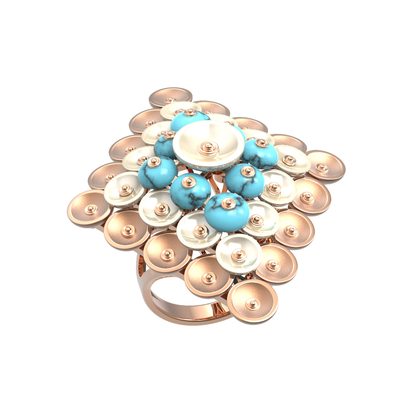Кольцо из золота c бирюзой и перламутром