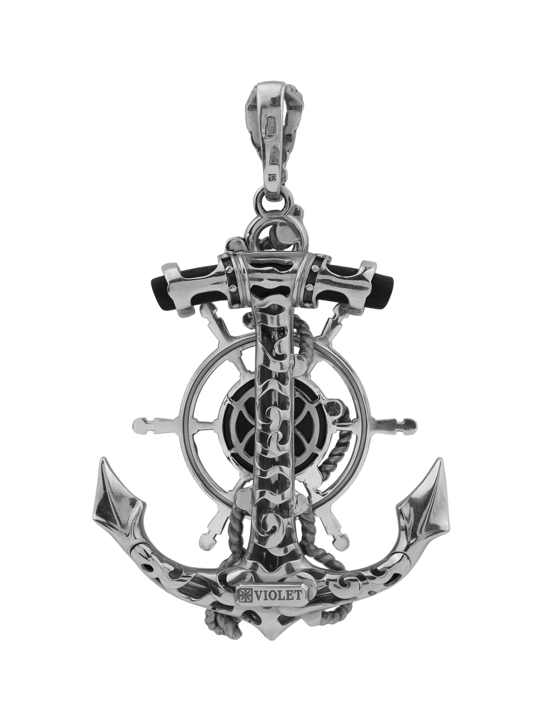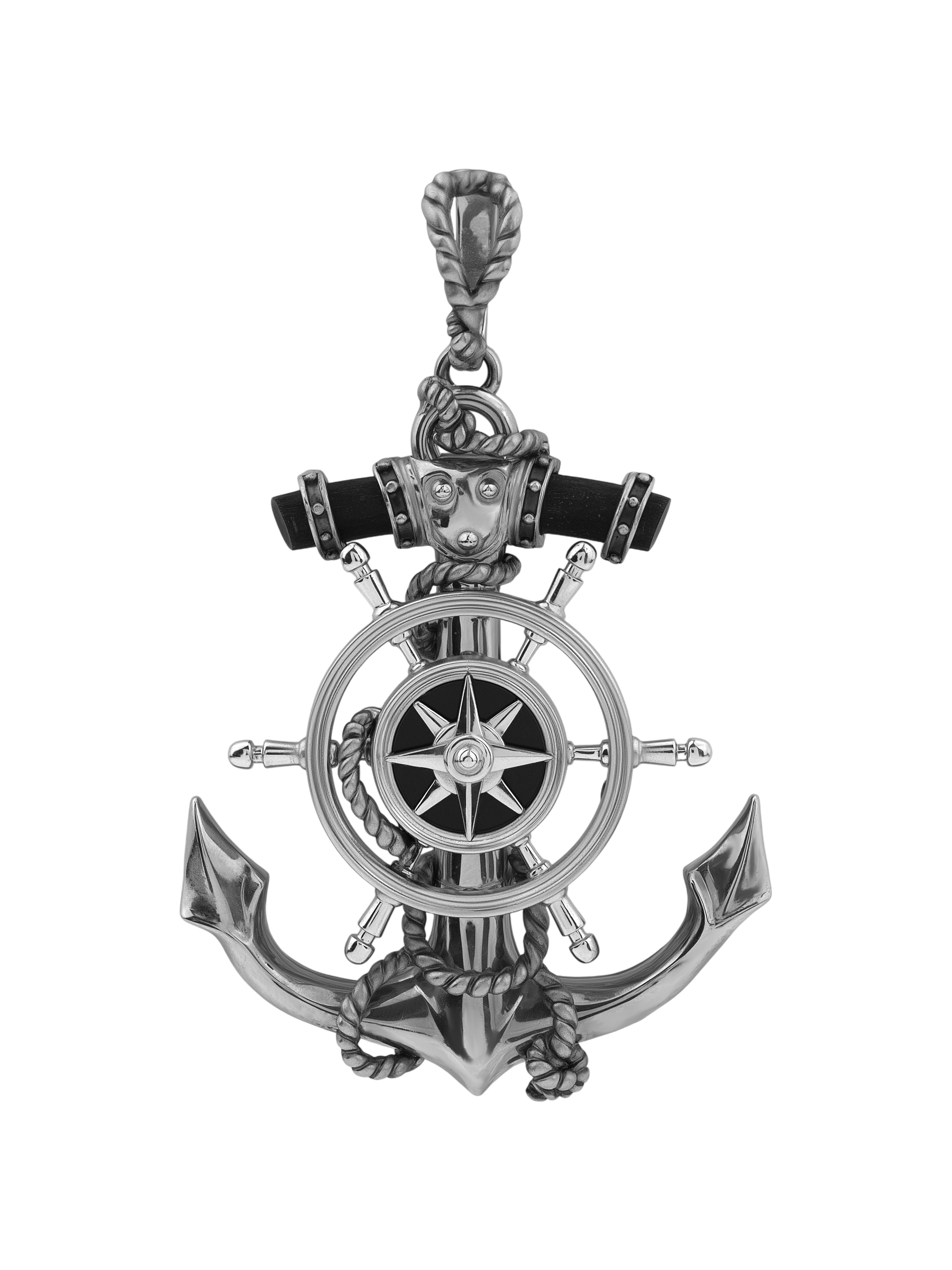 Подвеска из белого золота c ониксом и эбеновым деревом
