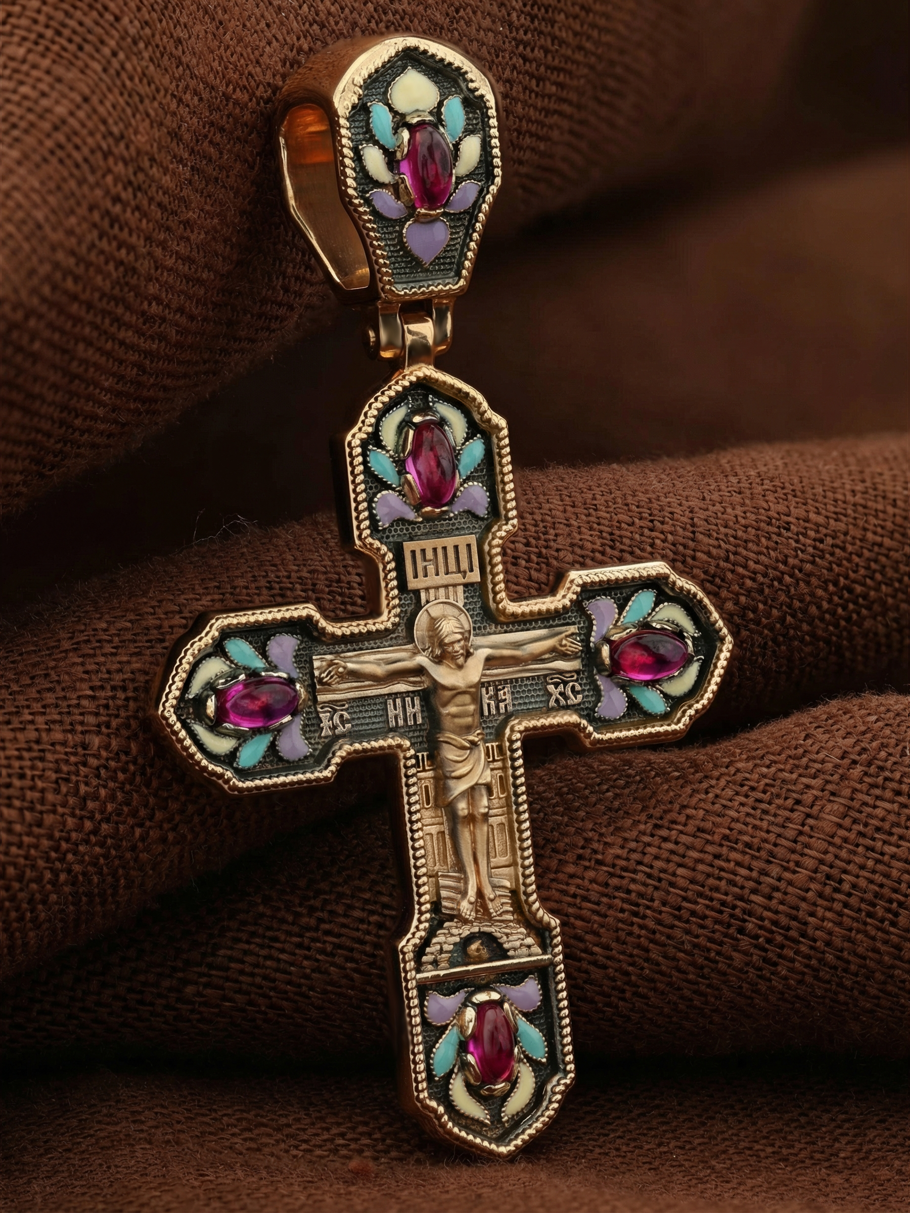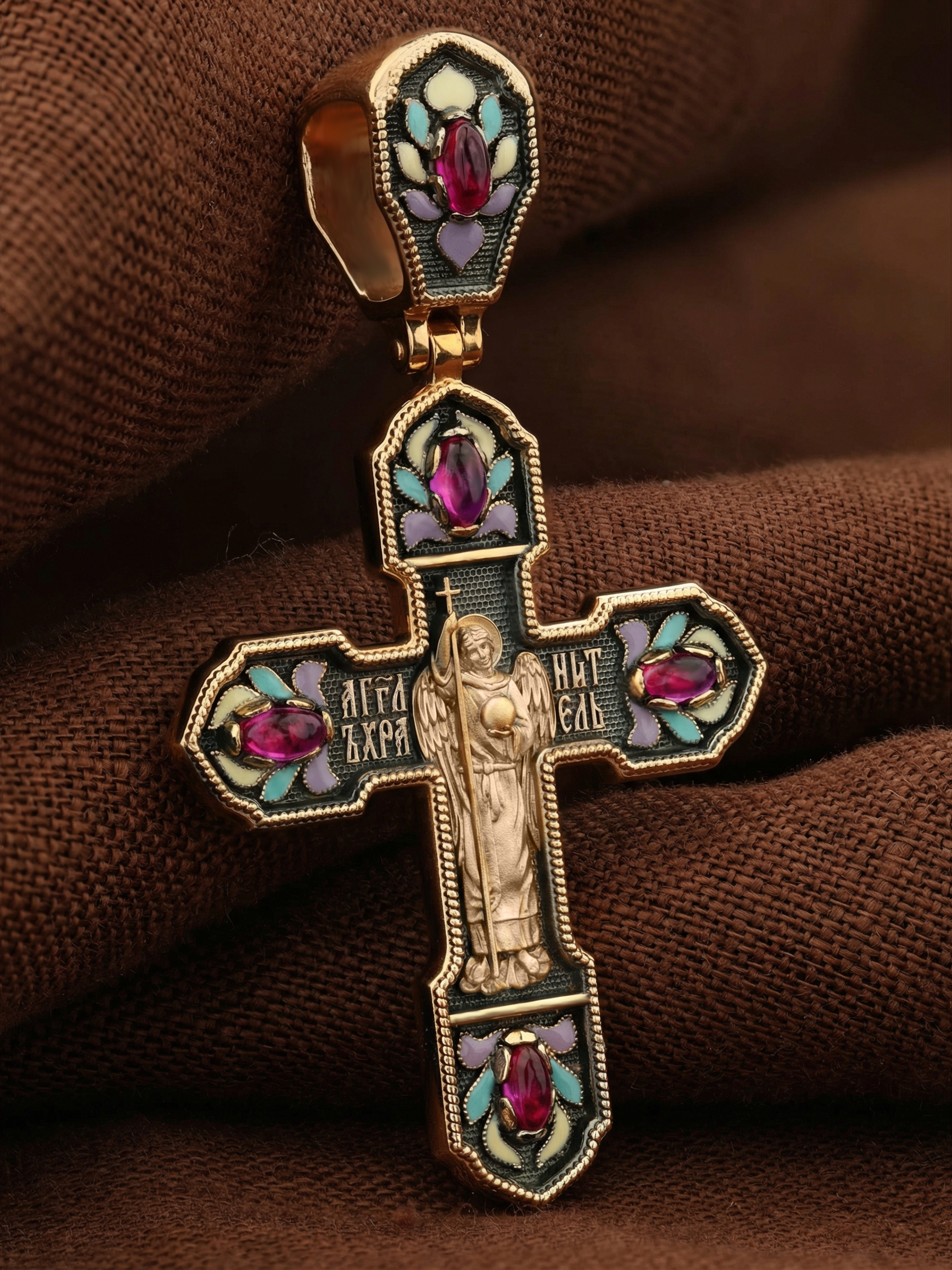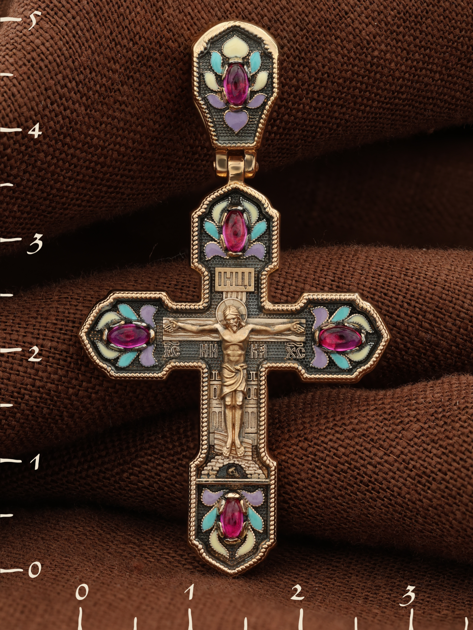 Крест из золота c эмалью и рубином