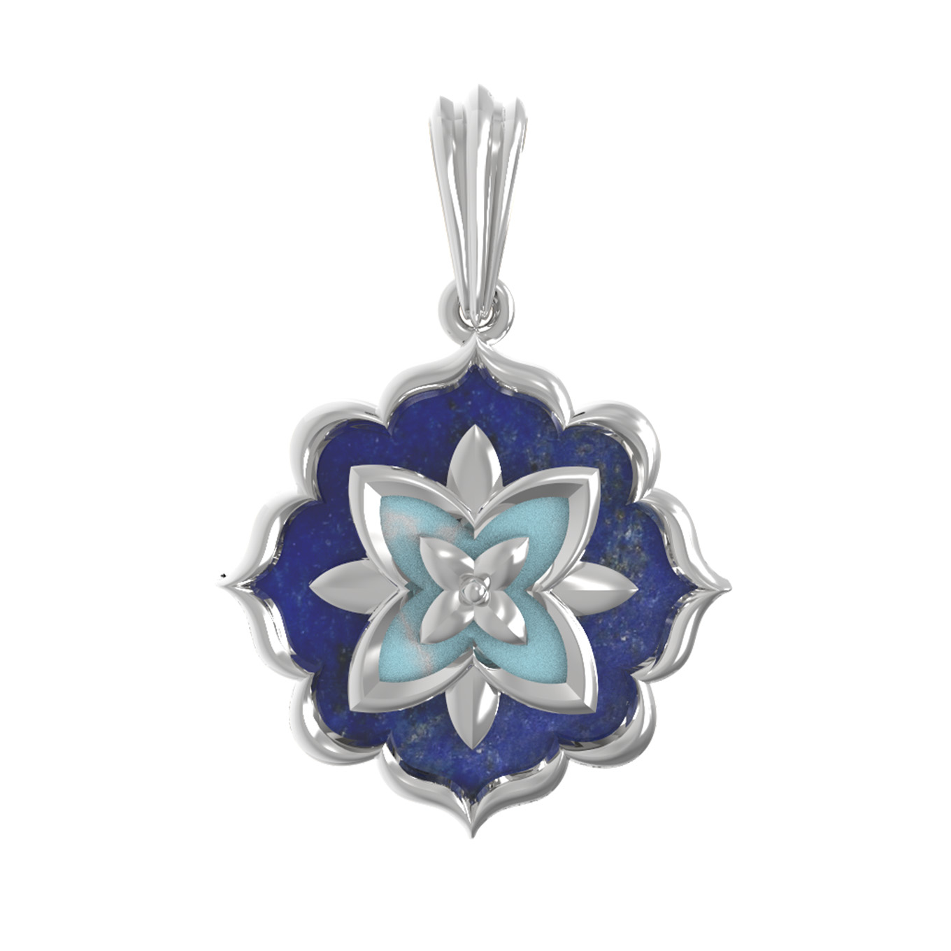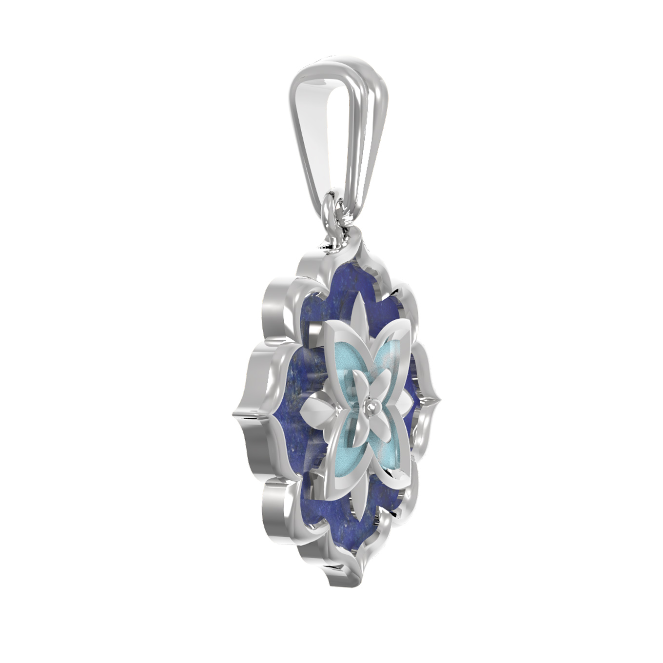 Подвеска из белого золота c бирюзой и лазуритом