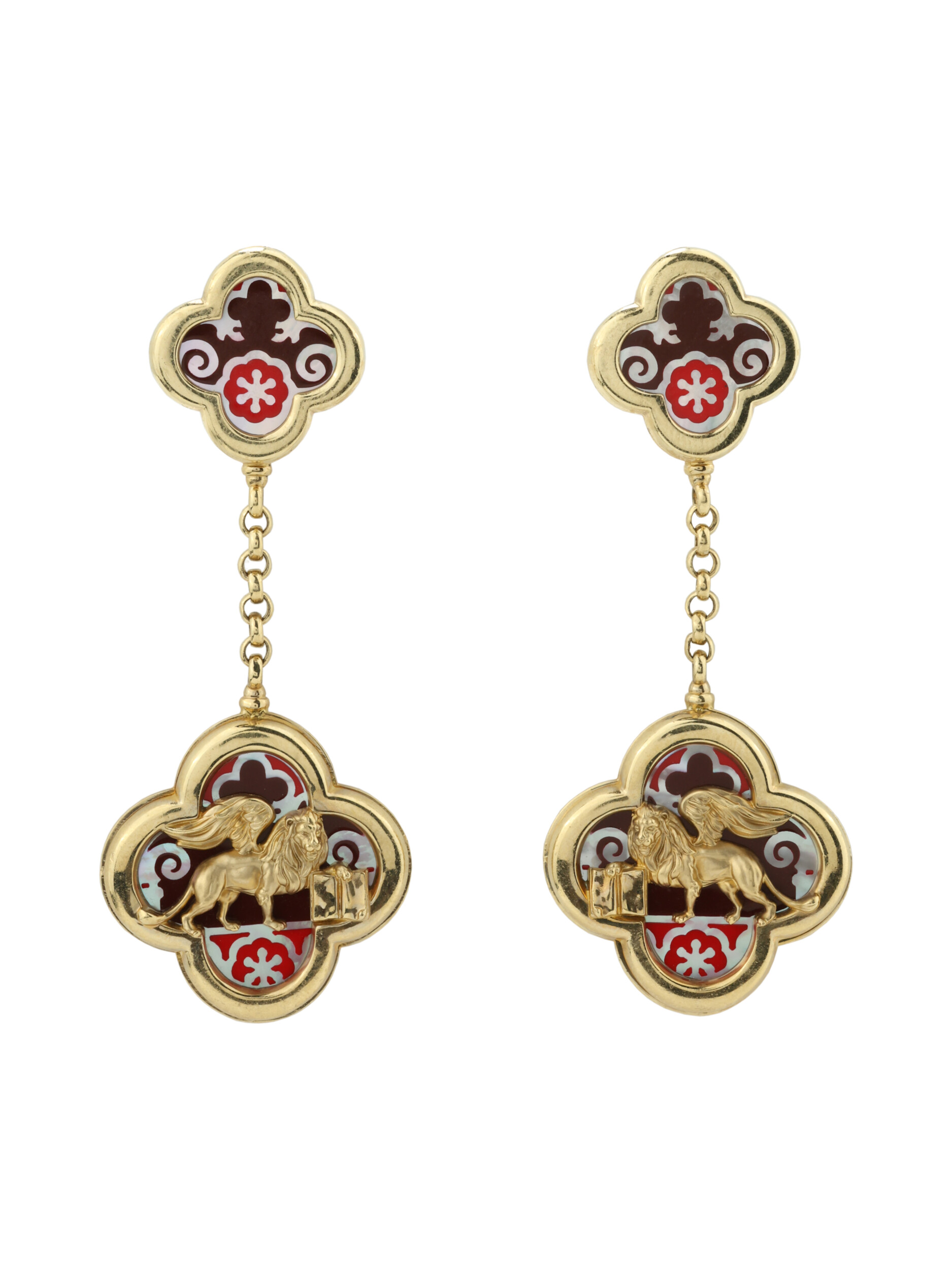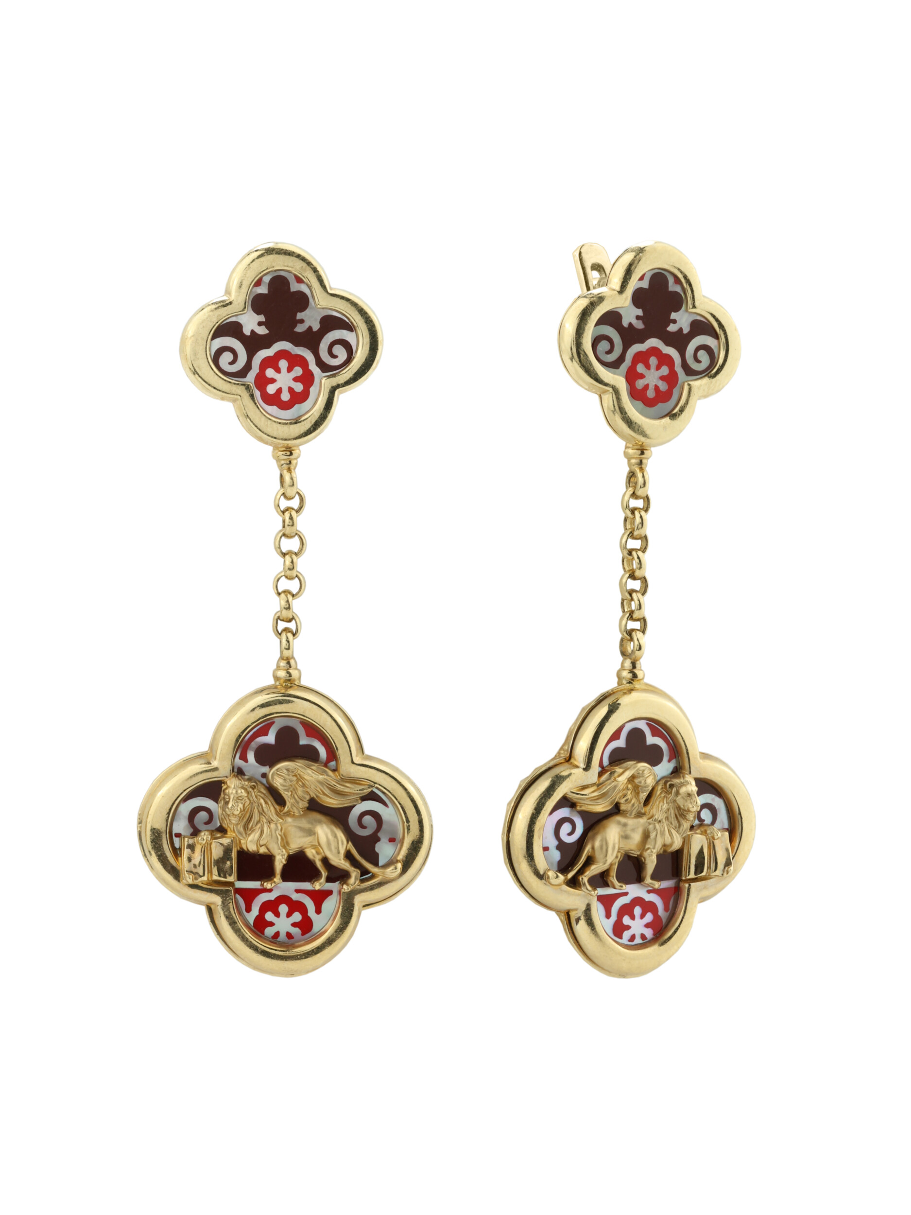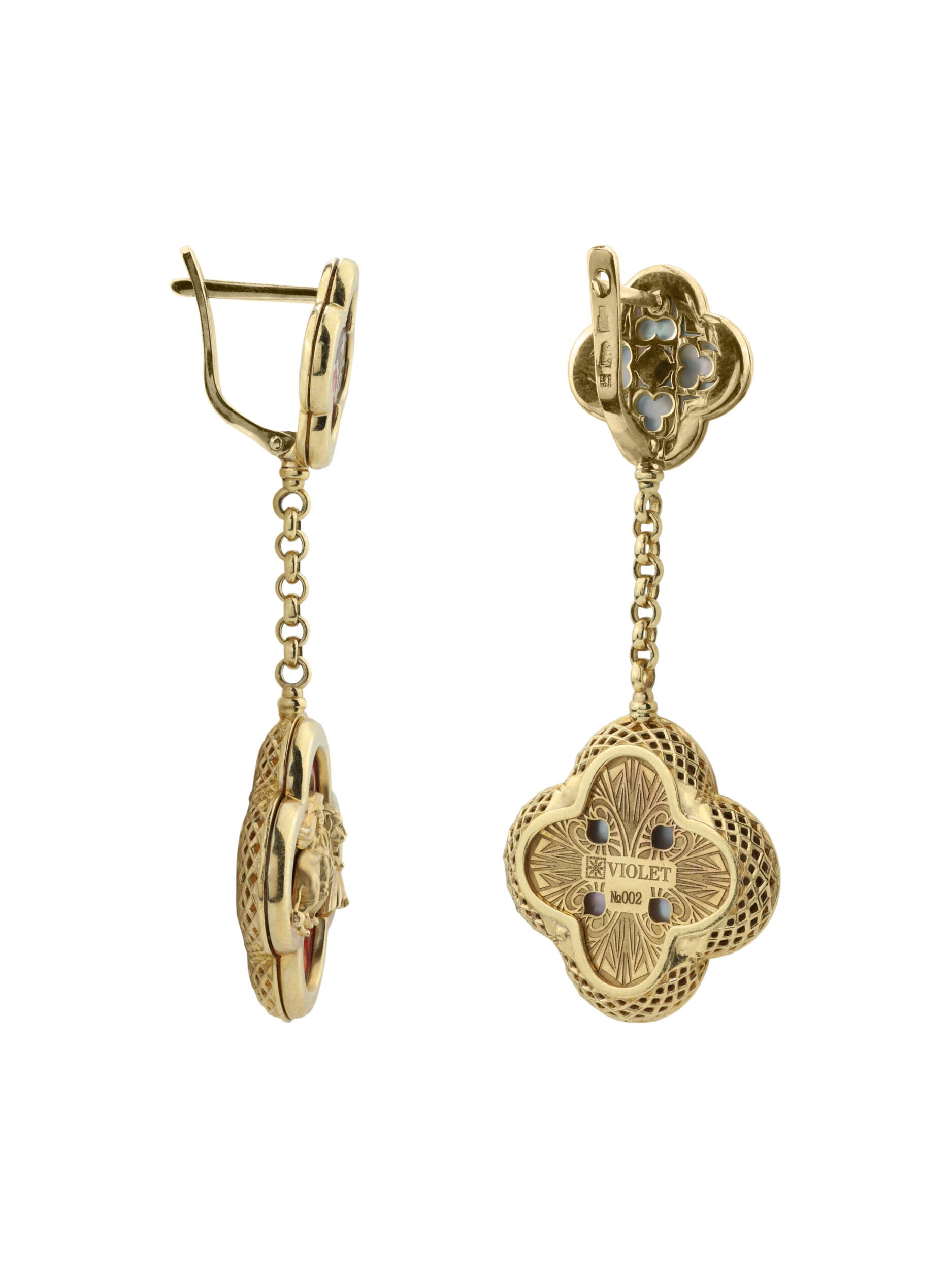 Серьги из лимонного золота c эмалью и перламутром