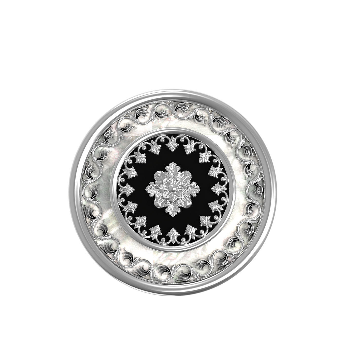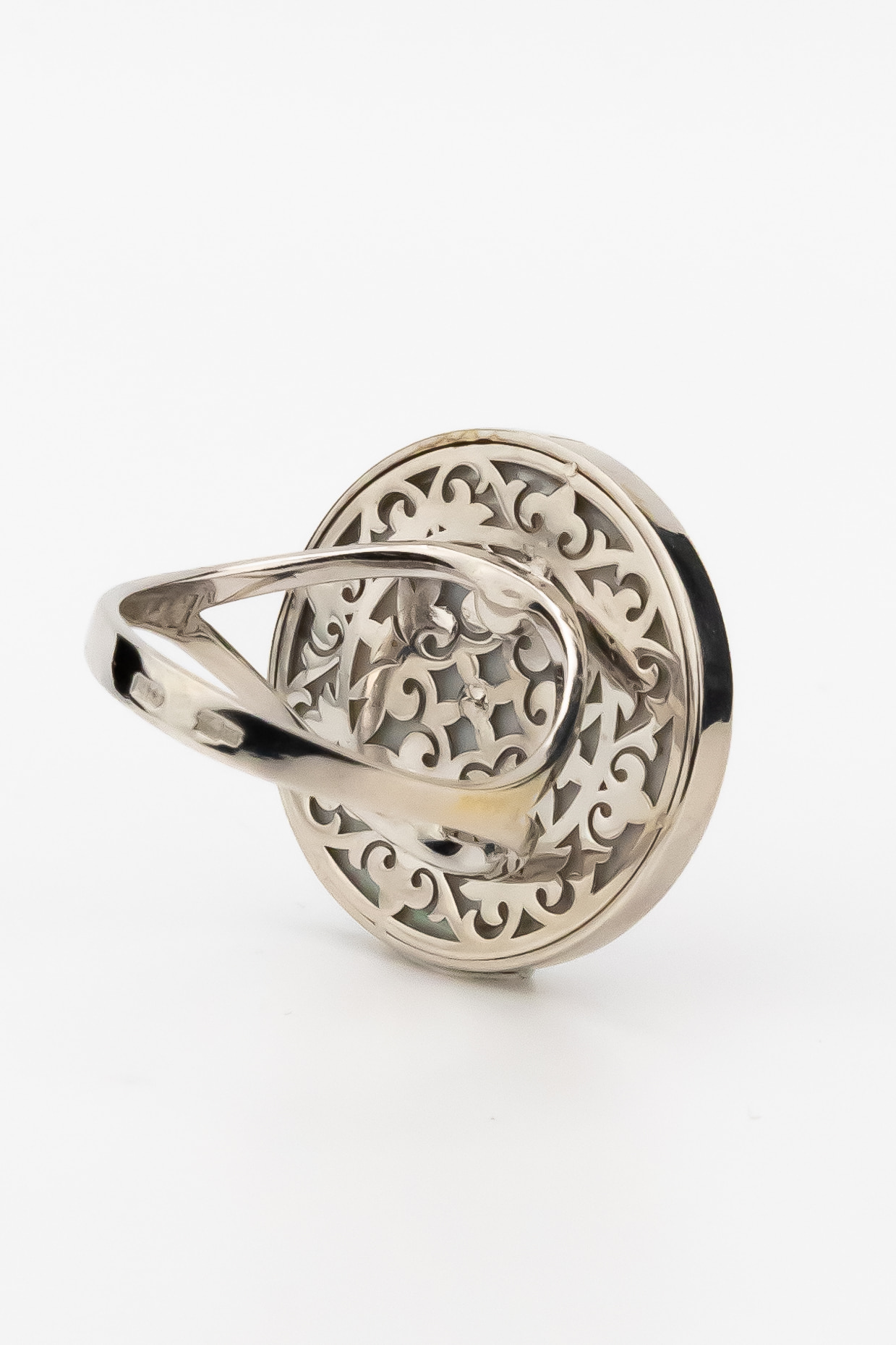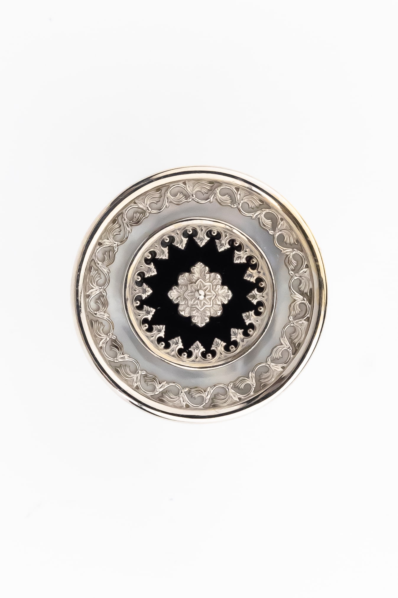 Кольцо из белого золота c ониксом и перламутром