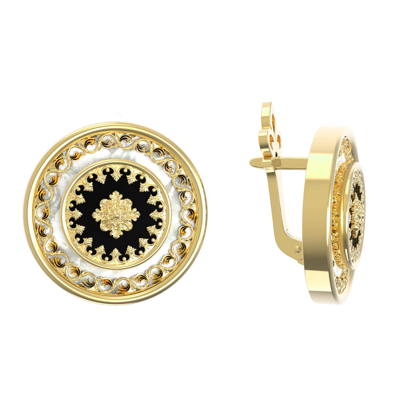 Серьги из лимонного золота c ониксом и перламутром