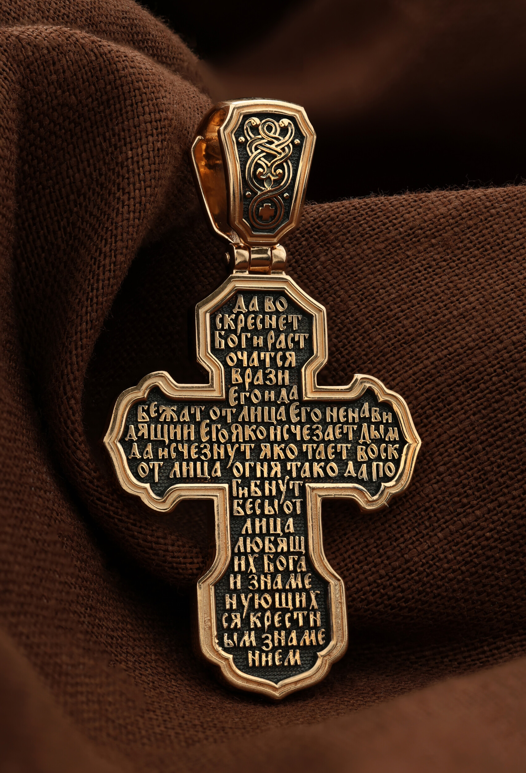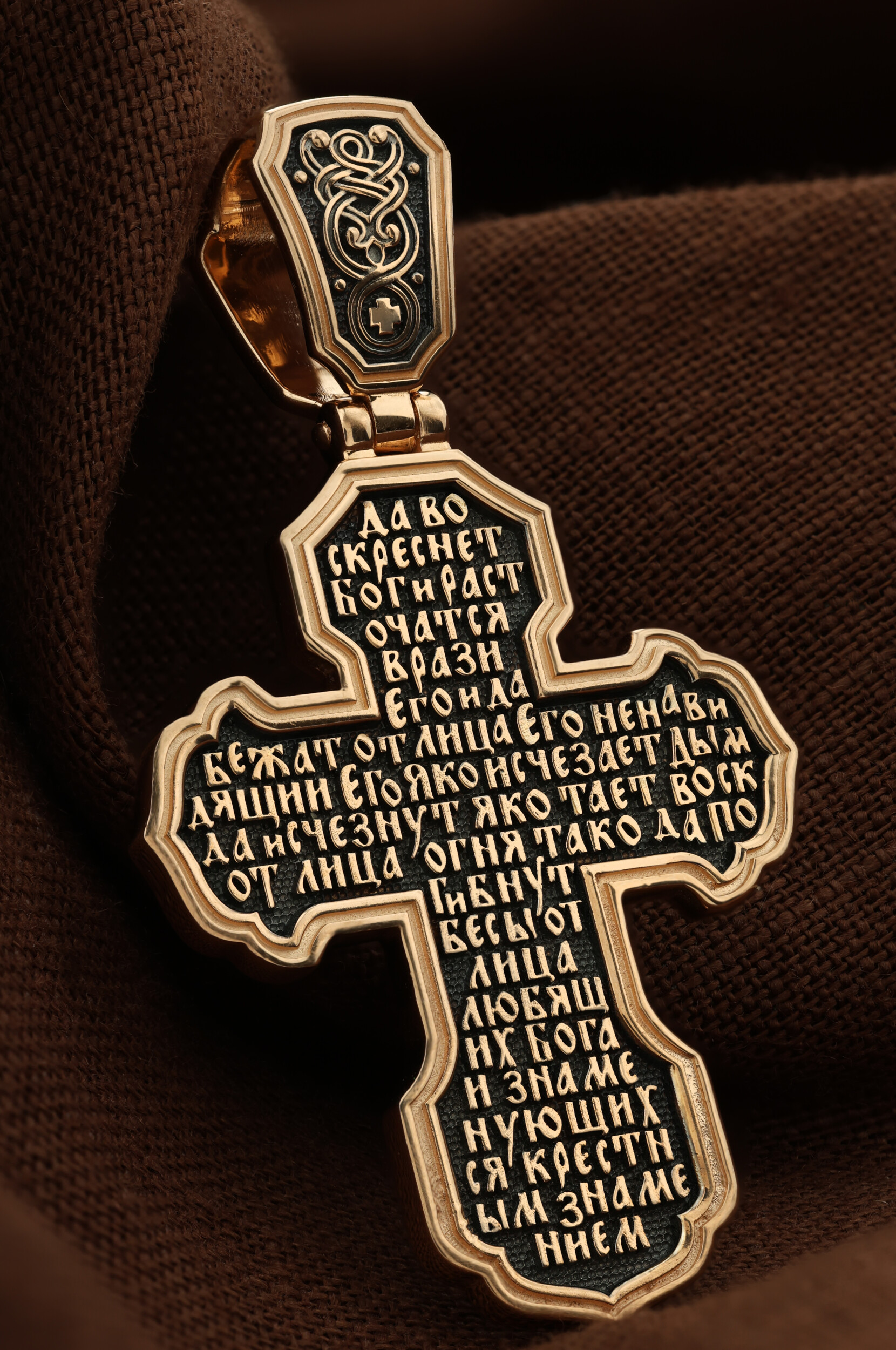 На оборотной стороне креста написана молитва Честному Кресту Господню: «Да воскреснет Бог, и расточатся врази Его, и да бежат от лица Его ненавидящии Его. Яко исчезает дым, да исчезнут; яко тает воск от лица огня, тако да погибнут беси от лица любящих Бога и знаменующихся крестным знамением…».