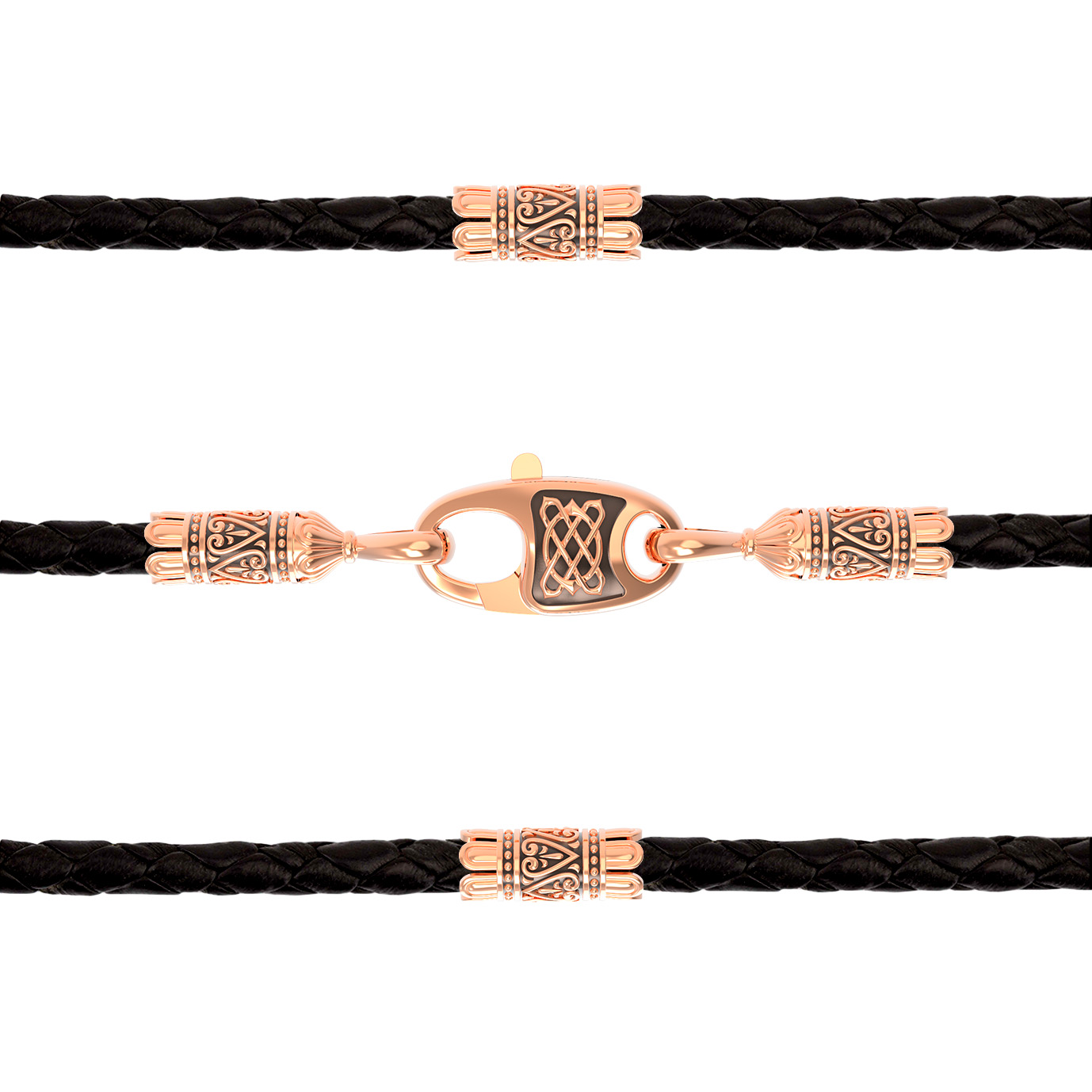 Гайтан из золота c кожаным шнурком
