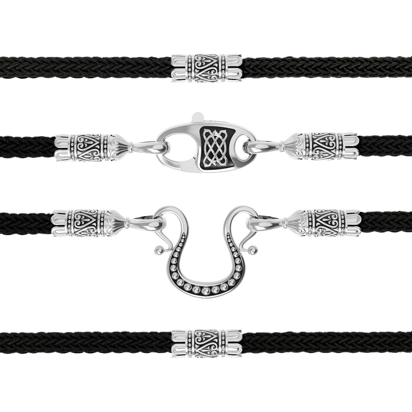 Шнурок шёлковый из белого золота c шёлковым шнурком