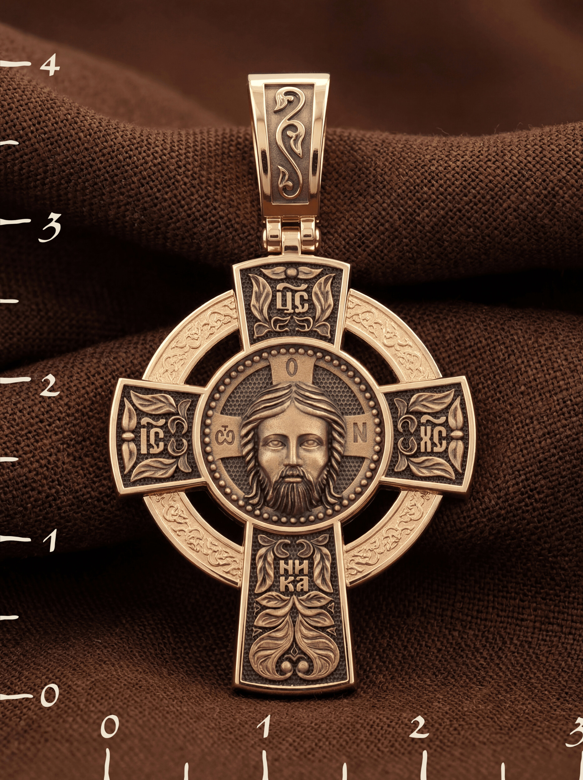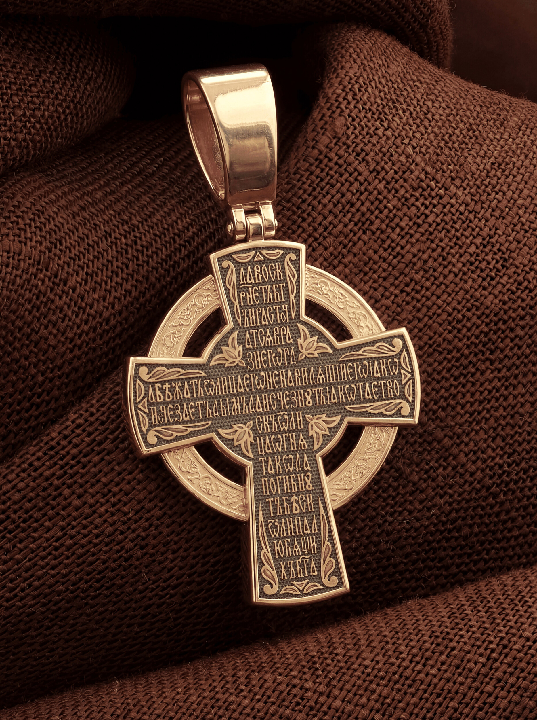 Нательный крест с кругом повторяет форму древних крестов, распространенных в России с конца XIII века. Простая лаконичная форма соединяет в себе два символа Бога: крест и круг. Крест знаменует Иисуса Христа, Бога, воплотившегося и распятого за грехи людей, круг — Бога сущего на Небесах, безначального и бесконечного. Часто такие кресты называют «кельтскими» или «новгородскими», так как кресты подобной формы были принесены на Русь кельтами, задолго до русских принявших христианство. Древнейший русский крест такой формы был найден в новгородской земле, в селе Боровичи.