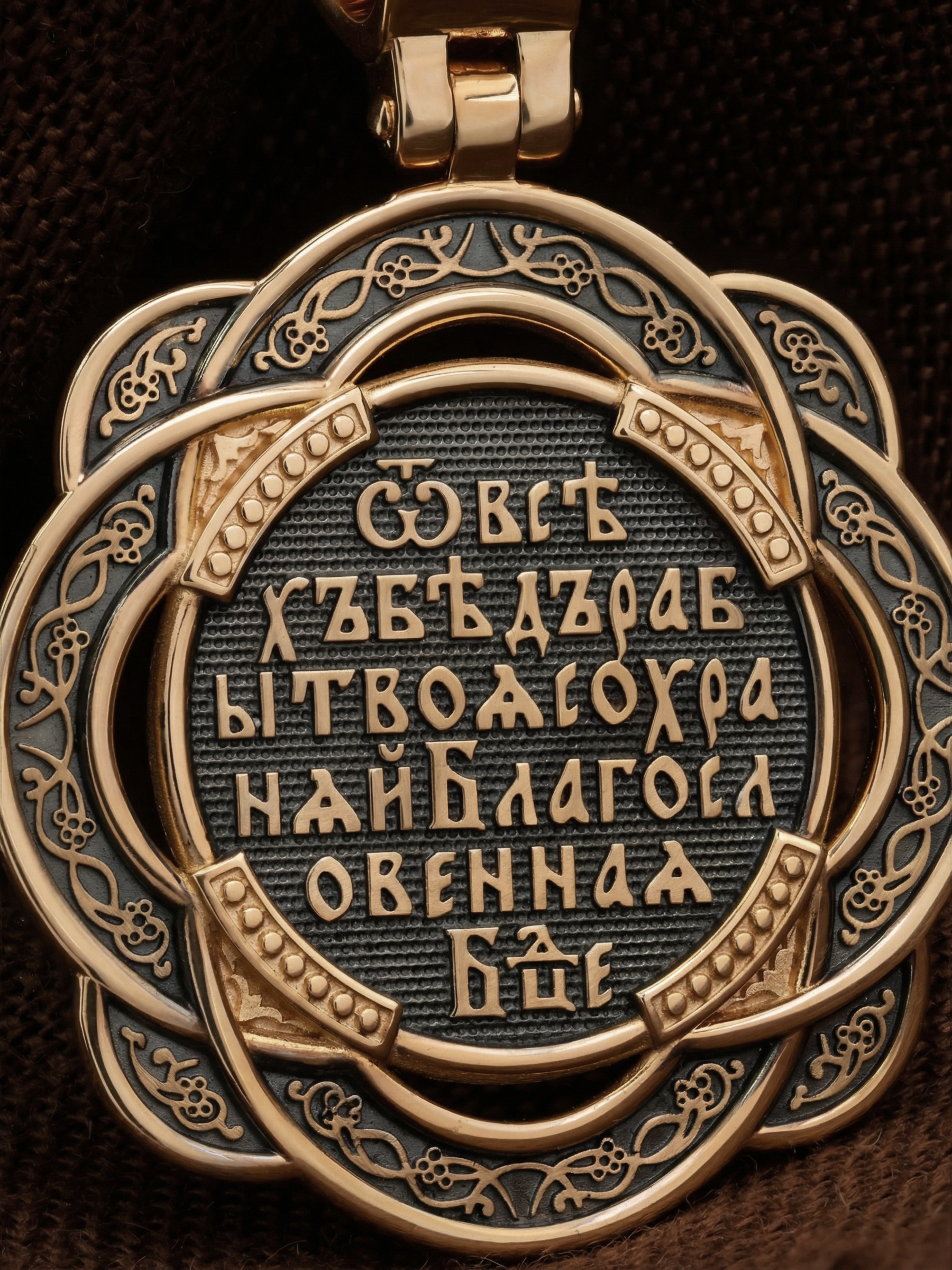 На лицевой части образка изображена Казанская икона Пресвятой Богородицы — одна из самых почитаемых в России. Икона была явлена на пожарище в Казани в 1579 году. В 1904 году святыня была похищена и уничтожена, но чудотворную силу иконы Богородица явила во многих ее списках. Молитва перед Казанской иконой Божьей Матери помогает во всех сложных случаях жизни, во всех печалях, невзгодах, скорбях.