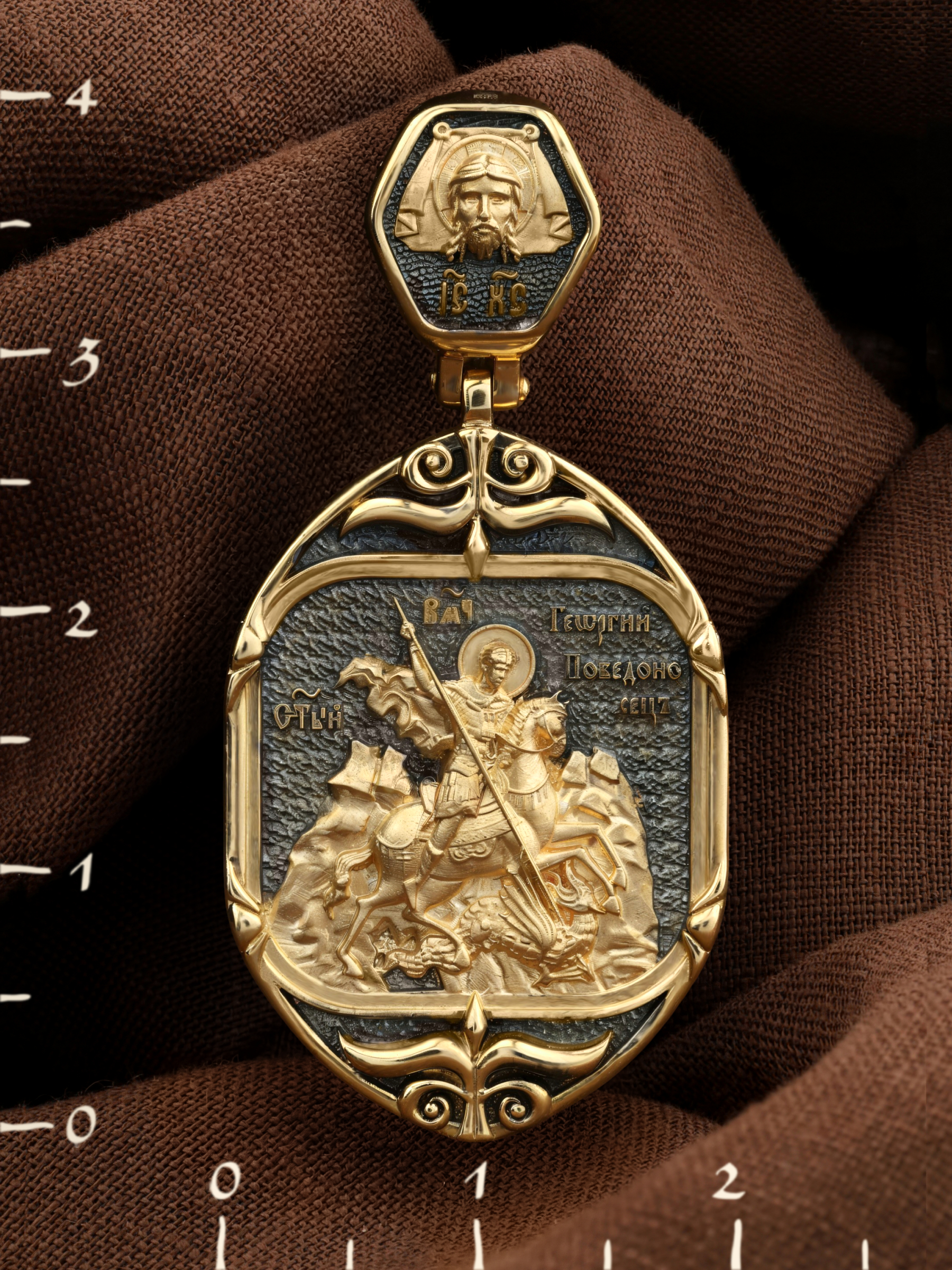 Основой композиции лицевой стороны является изображение Святого Георгия Победоносца.