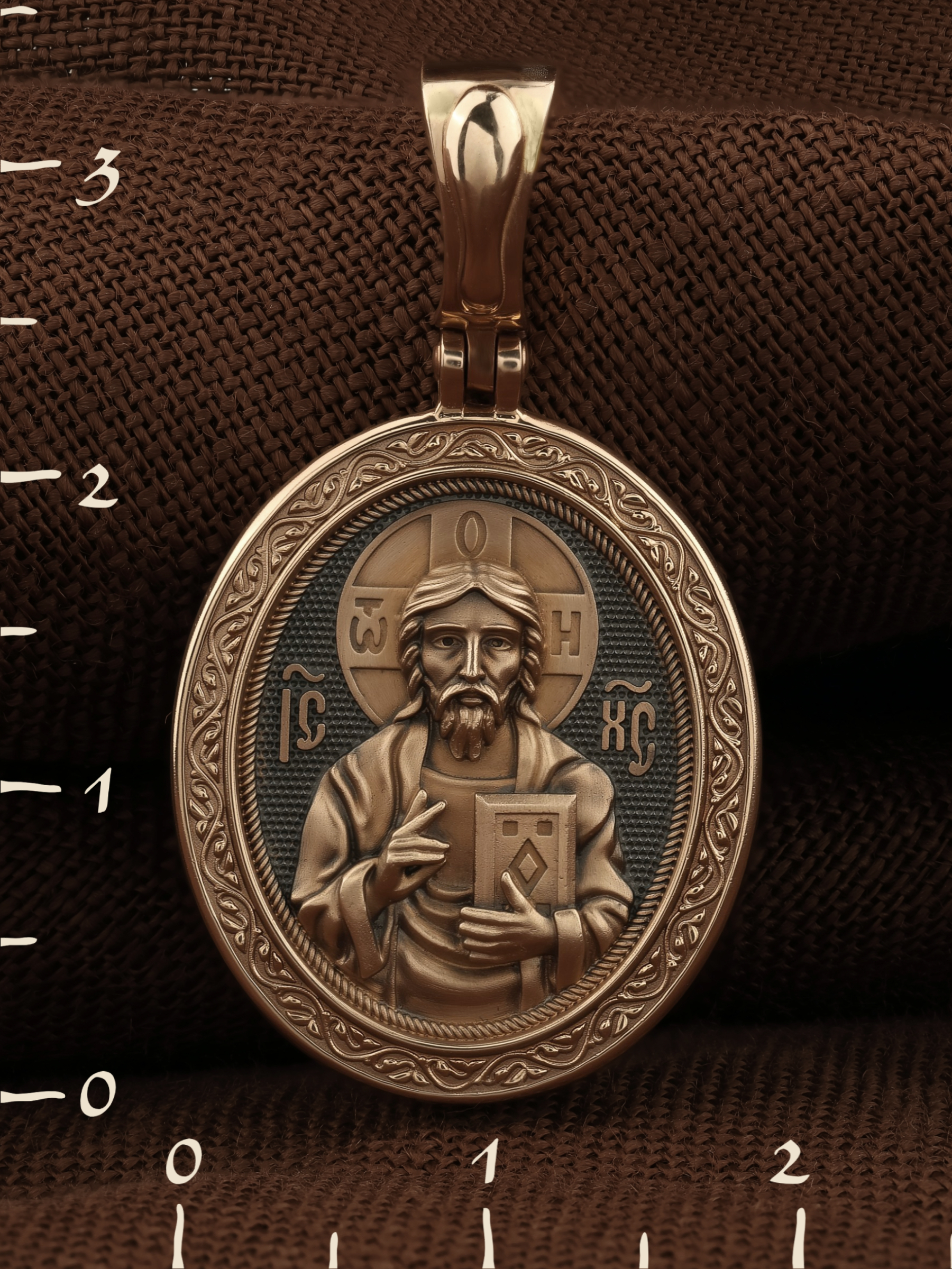 На лицевой стороне креста изображен Иисус Христос в образе Вседержителя, по-гречески «Пантократор». Это древнейший образ Спасителя, на котором Он представлен как властелин и правитель мира. Христос держит в руках Книгу, которая символизирует Книгу Бытия, то есть весь сотворенный Богом мир. В этой Книге судьбы всех людей, живущих на земле. Часто эту Книгу образно называют Книгой Жизни.