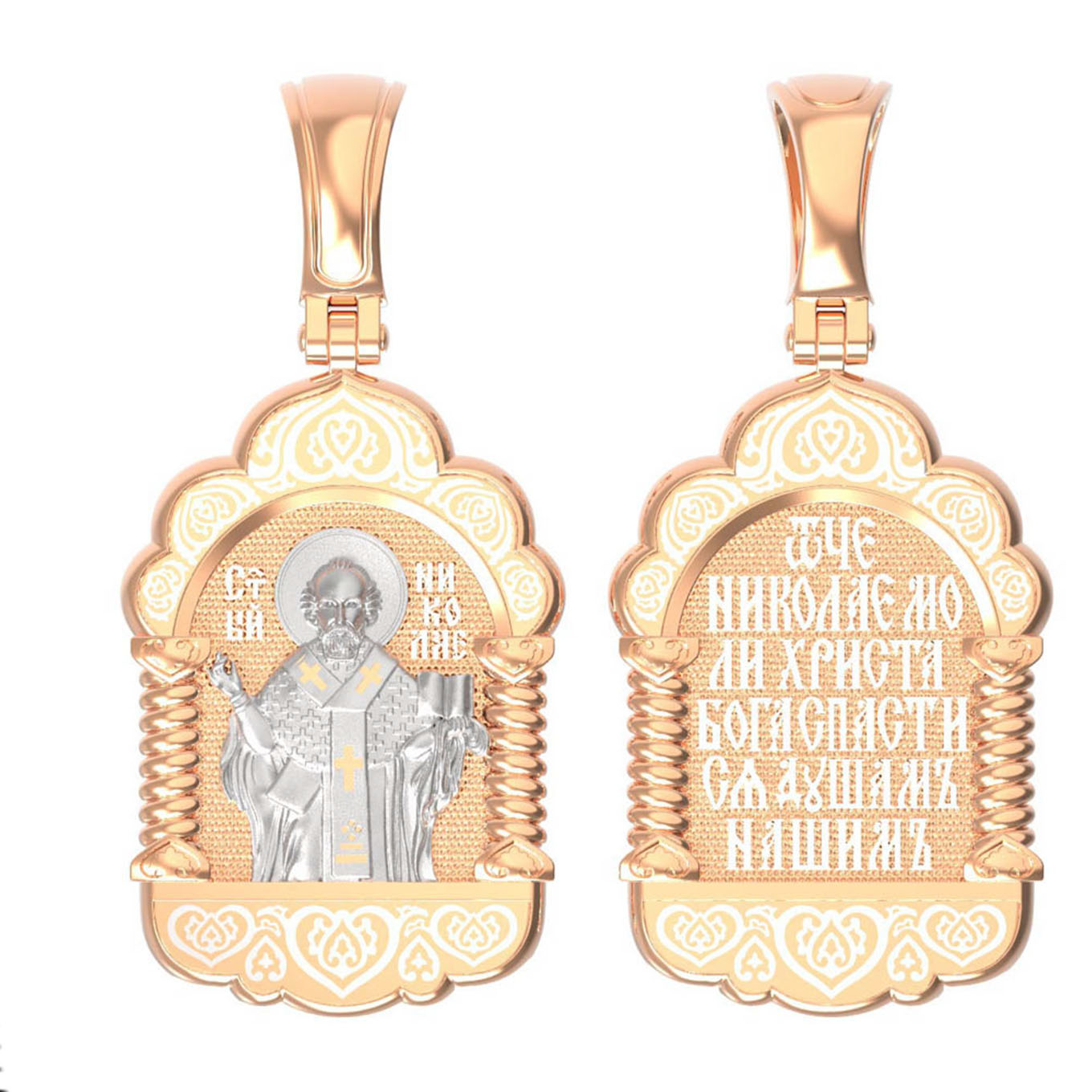 На лицевой стороне образка изображен Святитель Николай архиепископ Мир Ликийских, Чудотворец. Он является одним из самых почитаемых святых в православном мире. Святитель Николай родился во второй половине III века в Малой Азии в Ликийском городе Патары. С рождения Божий Угодник проявлял необыкновенные дарования. Сохранилось Предание, что во время крещения он, никем не поддерживаемый, простоял в купели три часа. Приняв сан священника, святитель Николай стал проводить еще более строгую подвижническую жизнь. Избранник Божий Николай стал вершиной всех добродетелей, поднятой до райской высоты. С кем из величайших праведников не сравнялся он образом духовной красоты, кому из них не последовал в своих деяниях и чудотворениях? Вся жизнь святого Николая — это служение Богу. Много великих и преславных чудес сотворил великий Святитель Николай Угодник. Он помогал сущим в бедах, укрощал штормы, спасал от потопления и выносил на сушу из глубины морской, освобождал из плена и приносил освобожденных домой, избавлял от уз и темницы, защищал от посечения мечом, освобождал от смерти и подавал многим различные исцеления, слепым прозрение, хромым хождение, глухим слух, немым дар слова.
