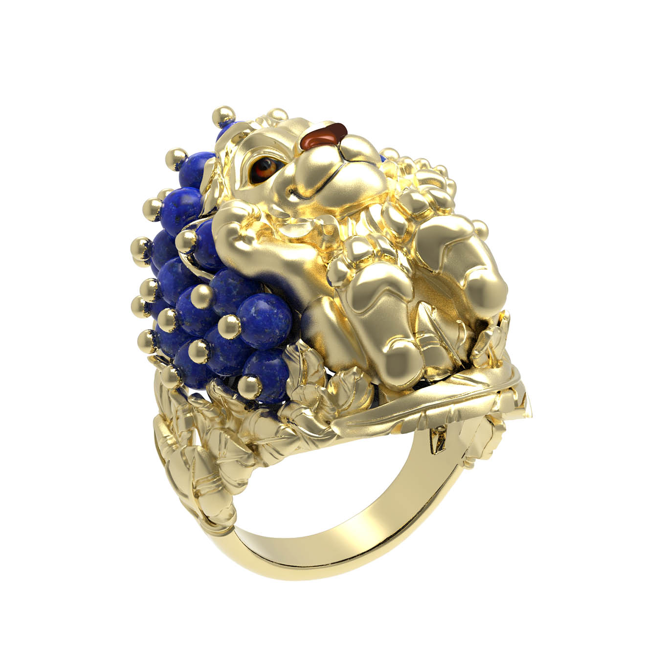 Кольцо из лимонного золота c эмалью и лазуритом