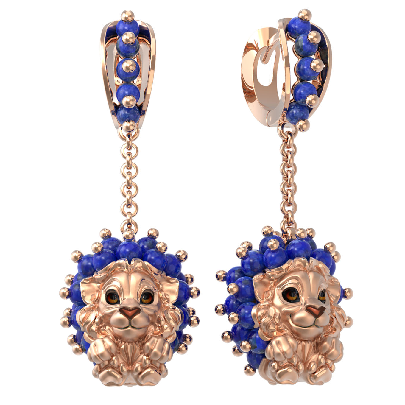 Серьги из золота c эмалью и лазуритом