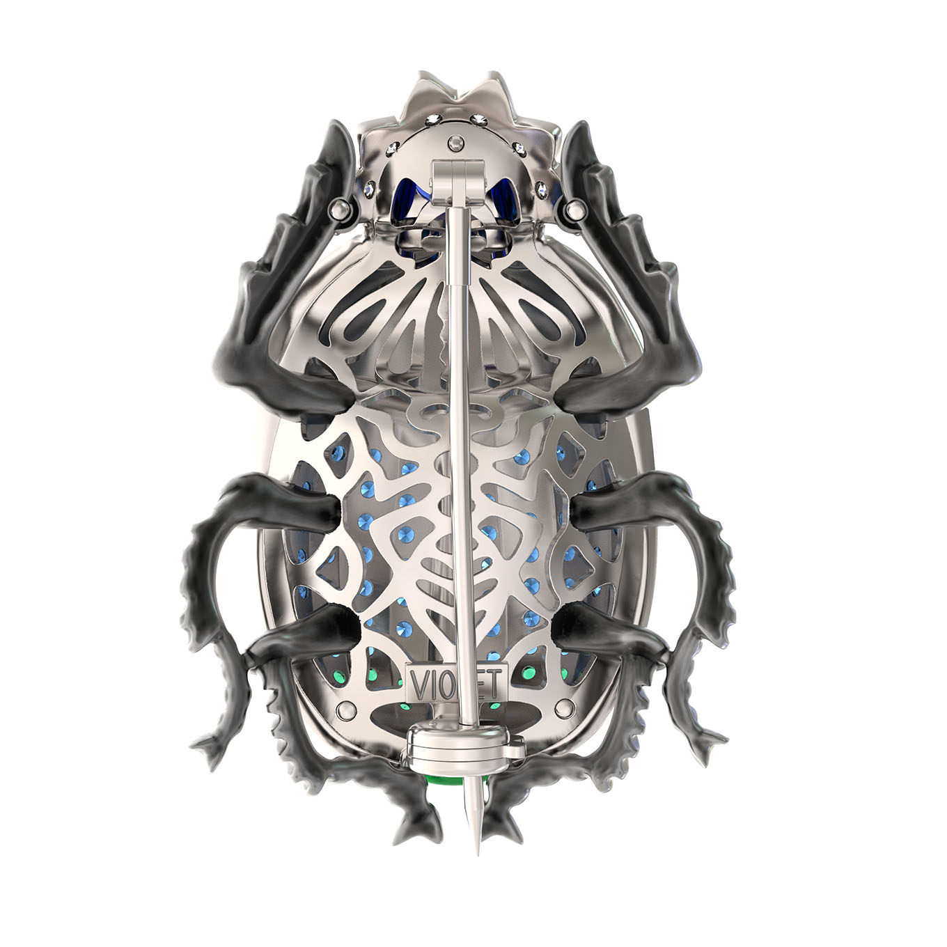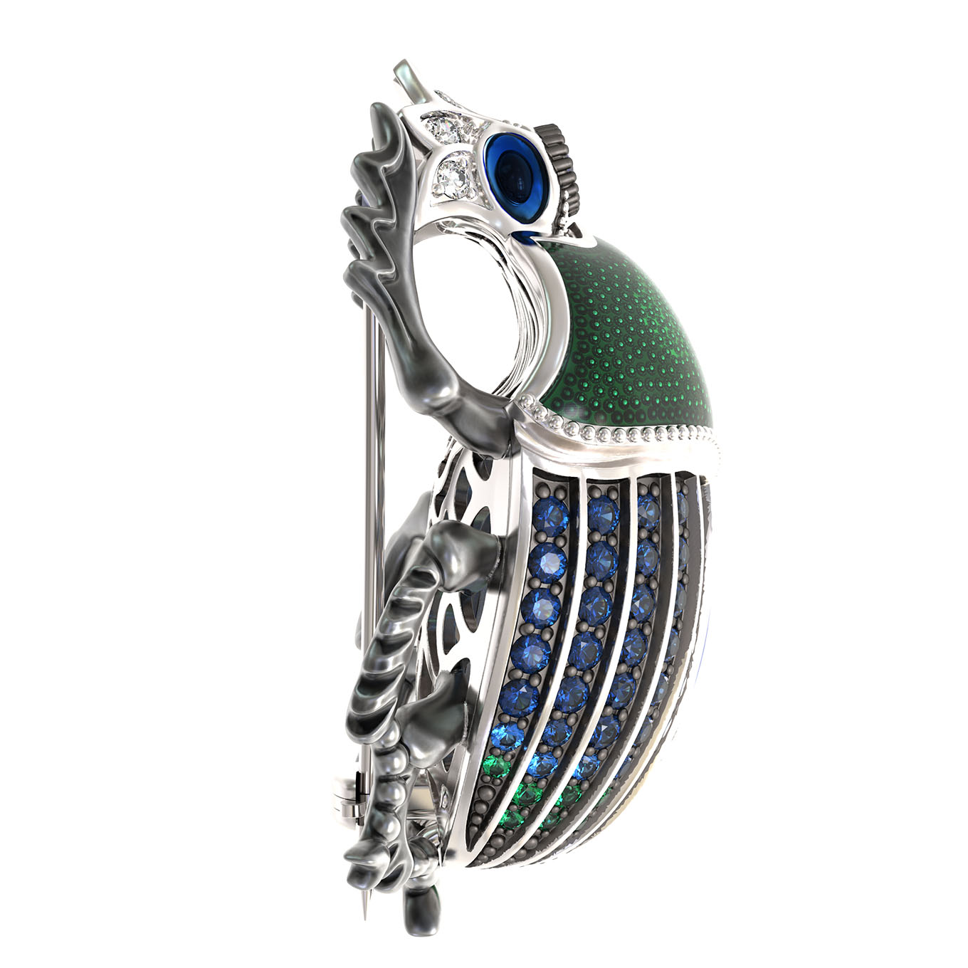 Брошь из белого золота c эмалью, фианитом и сапфиром