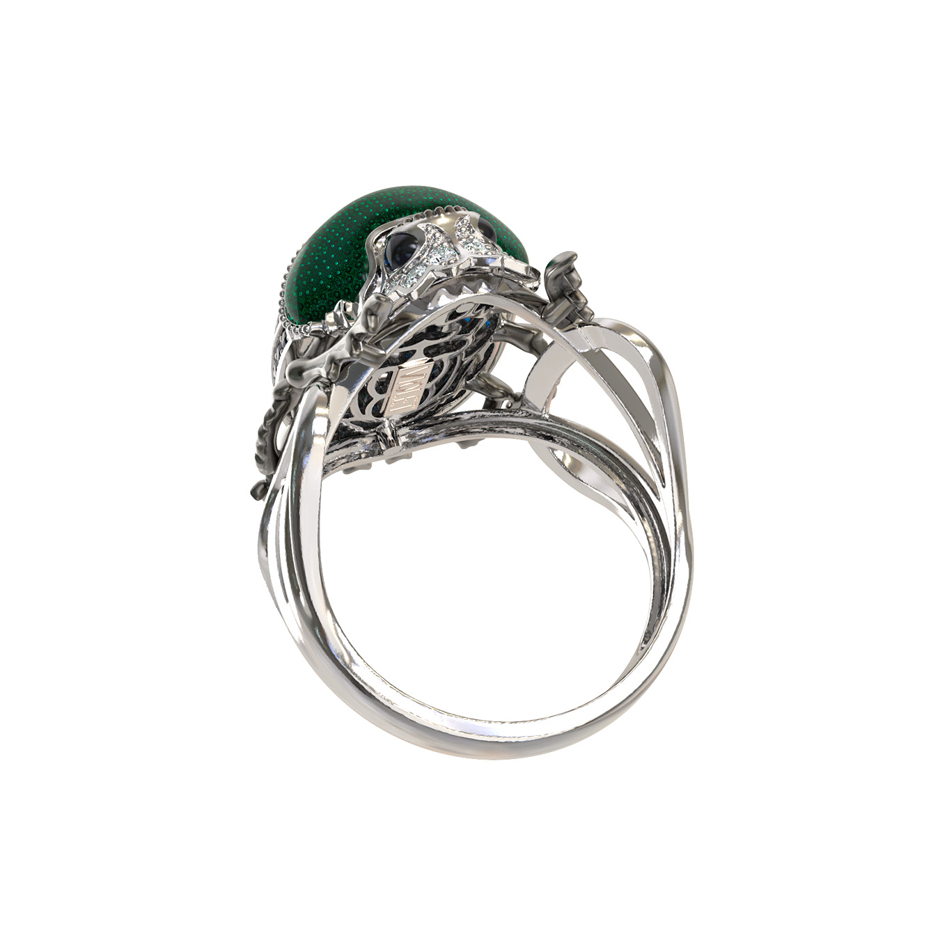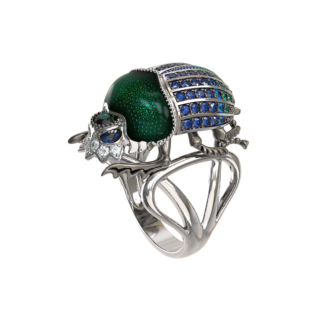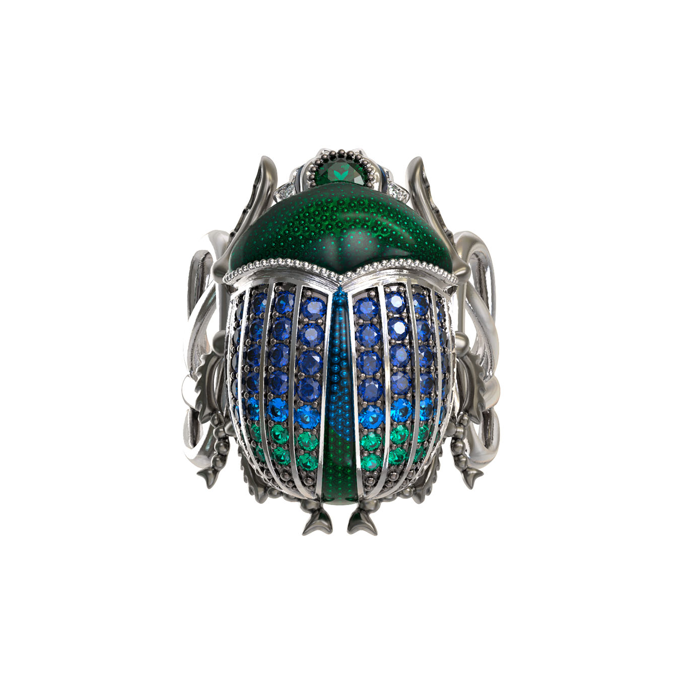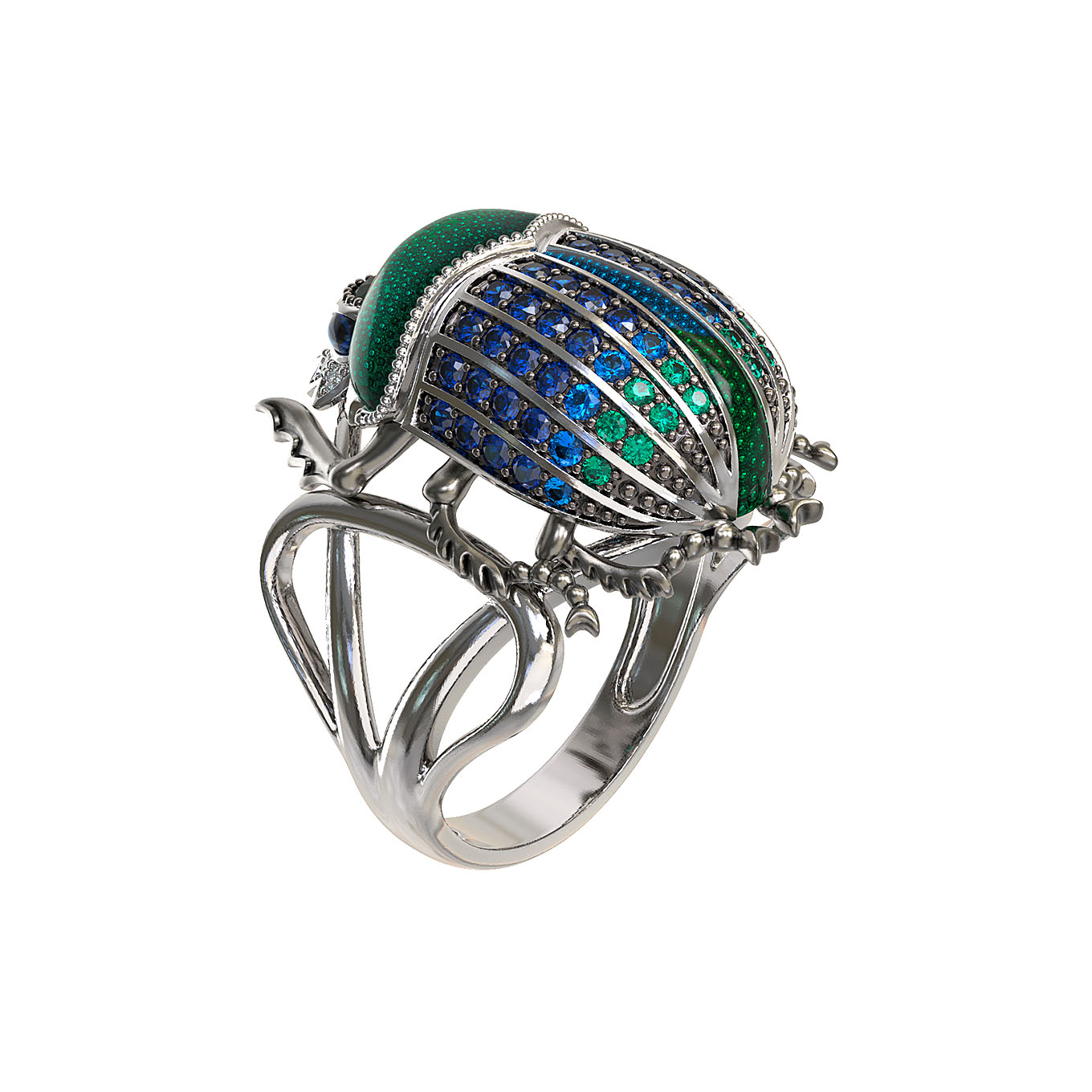 Кольцо из белого золота c эмалью, фианитом и сапфиром