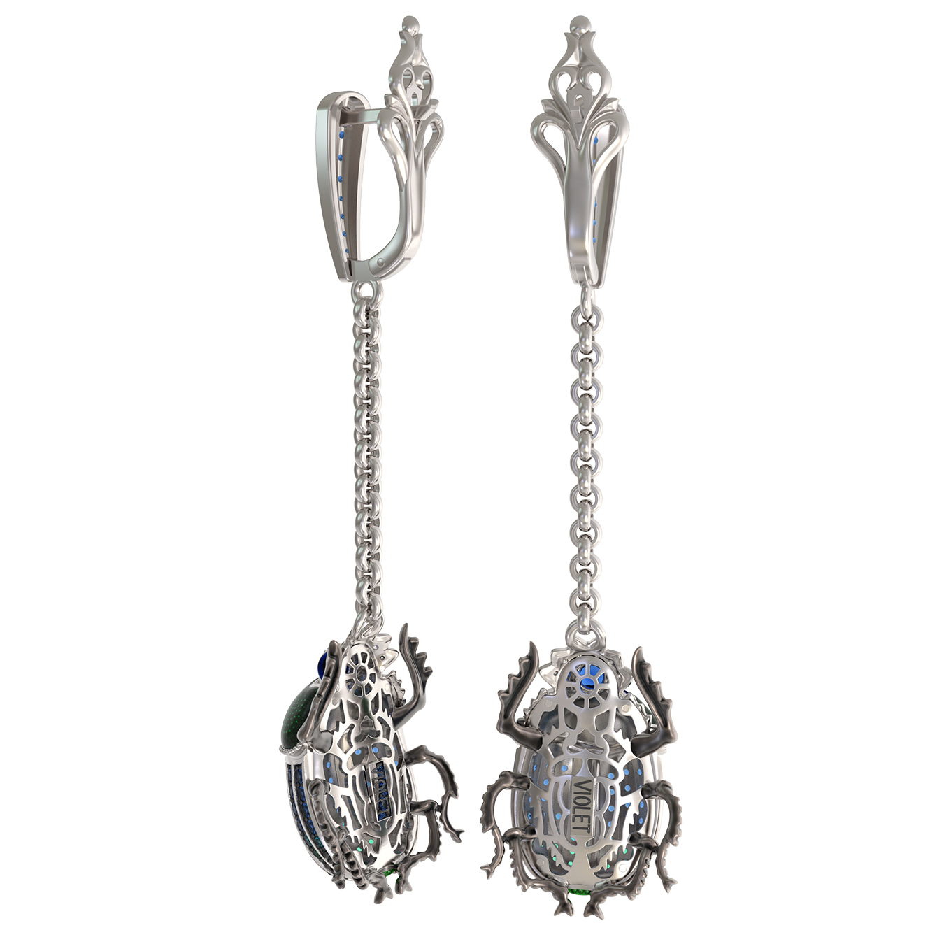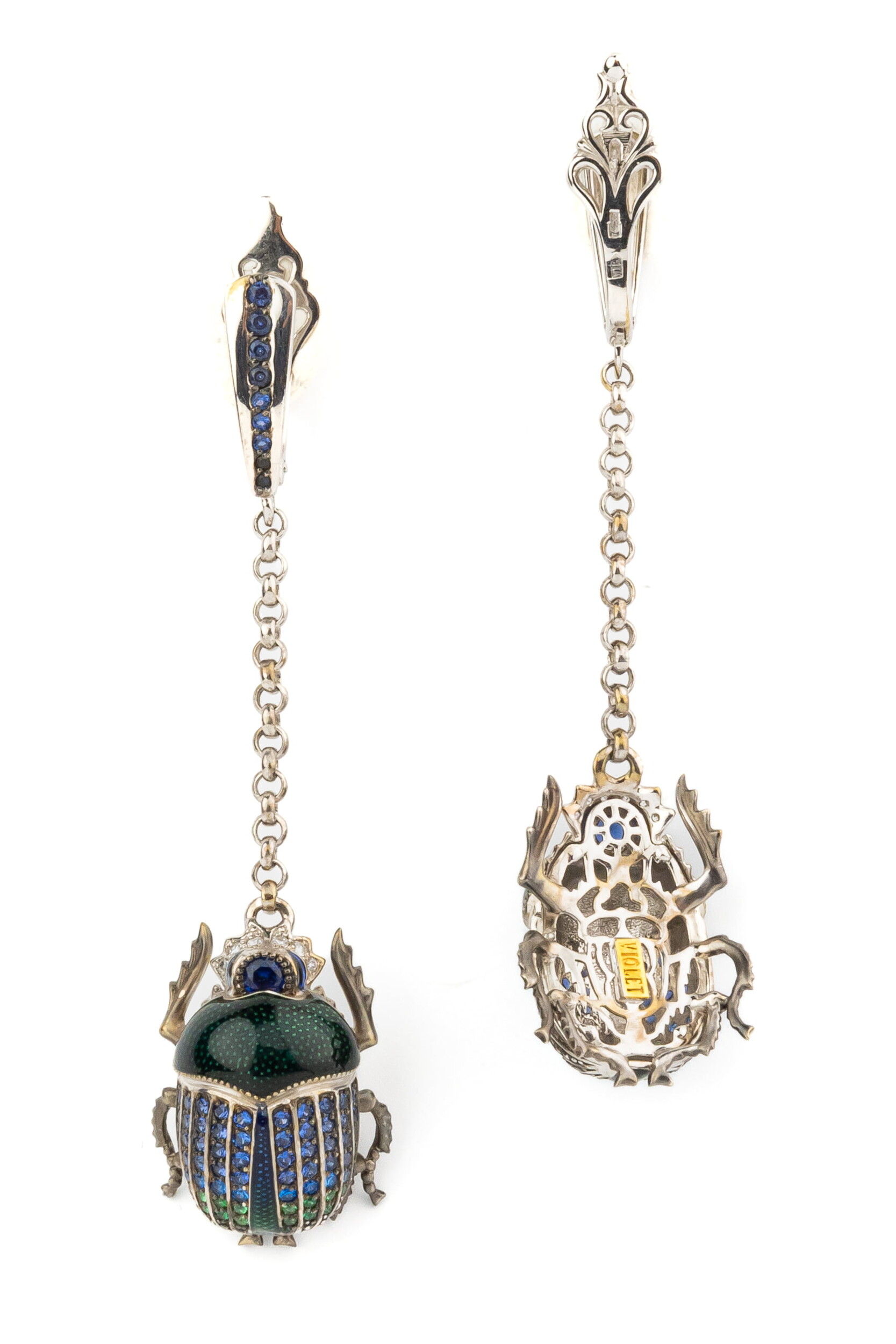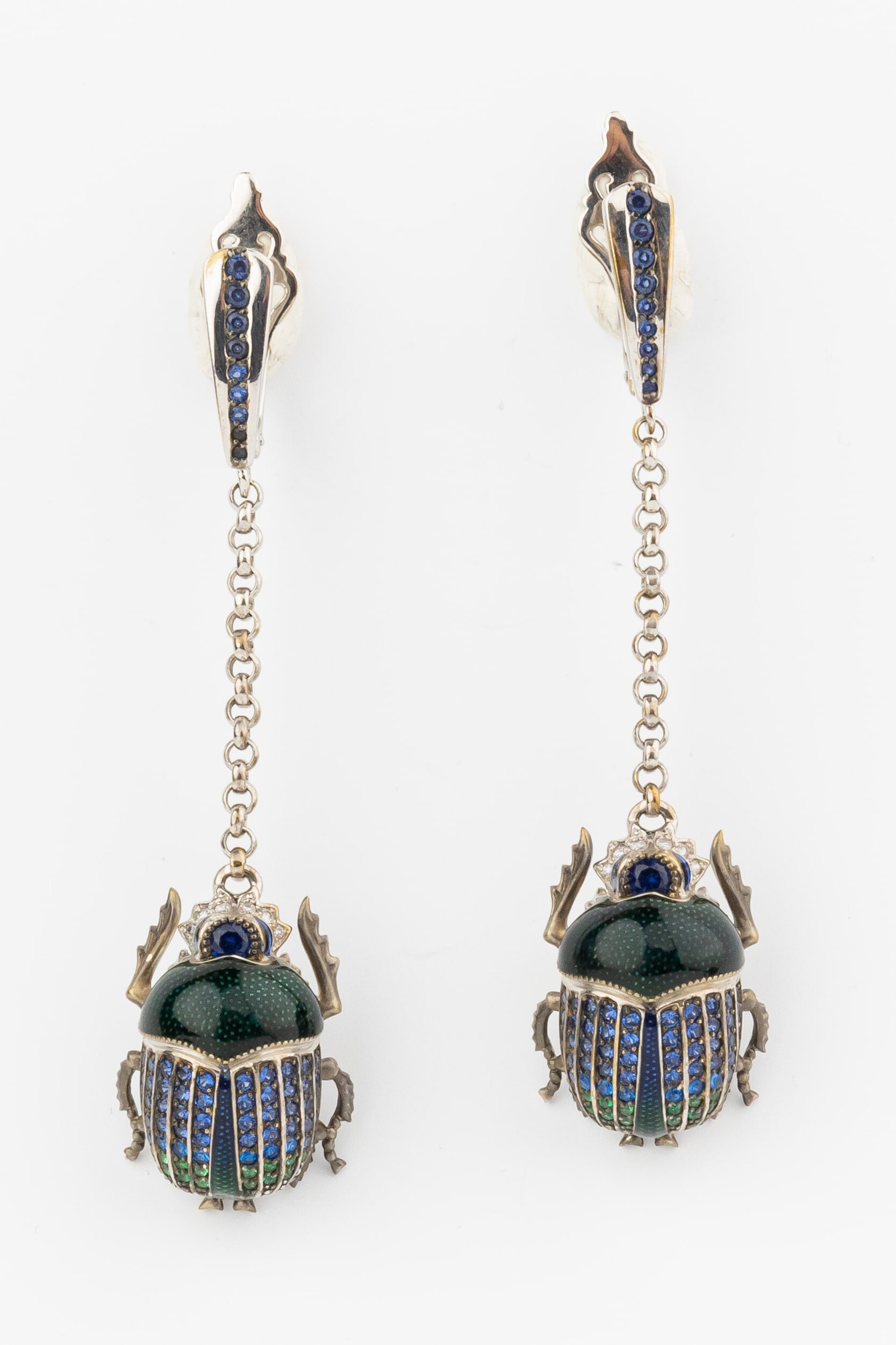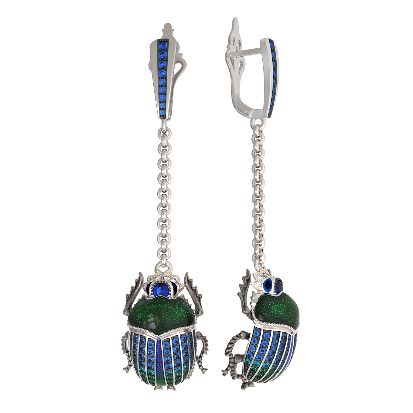 Серьги из белого золота c эмалью, фианитом и сапфиром