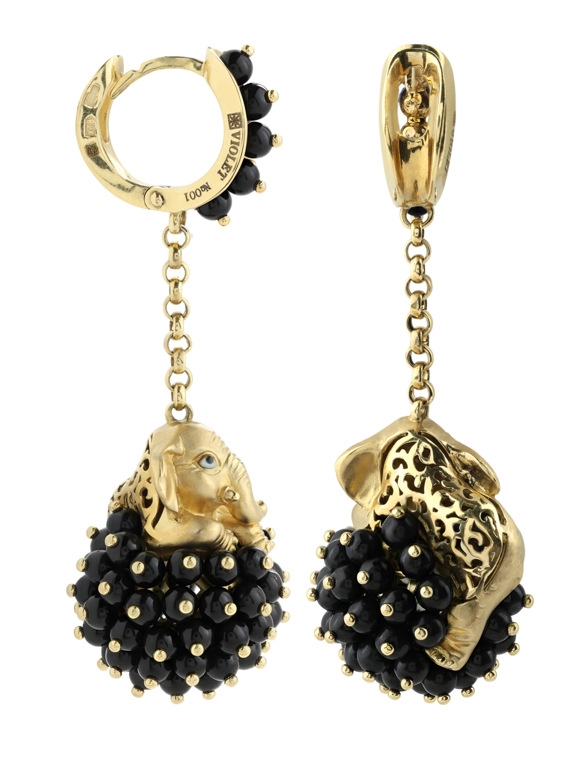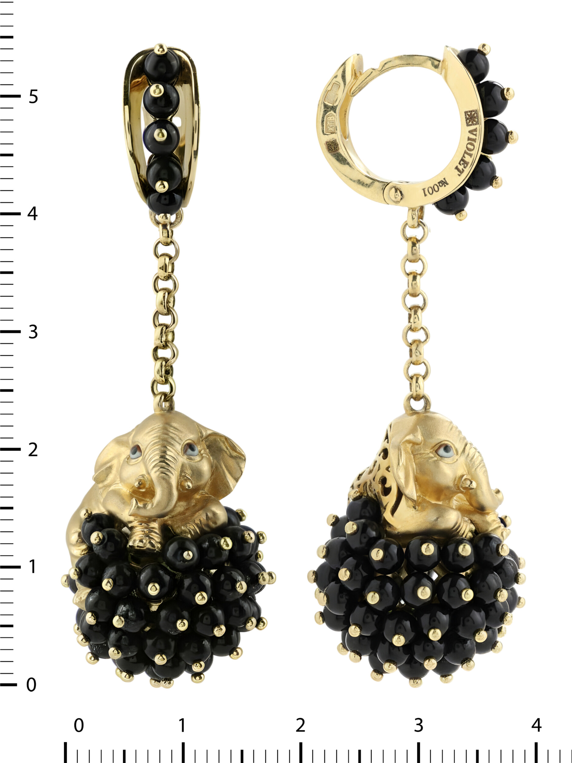 Серьги из лимонного золота c эмалью и ониксом