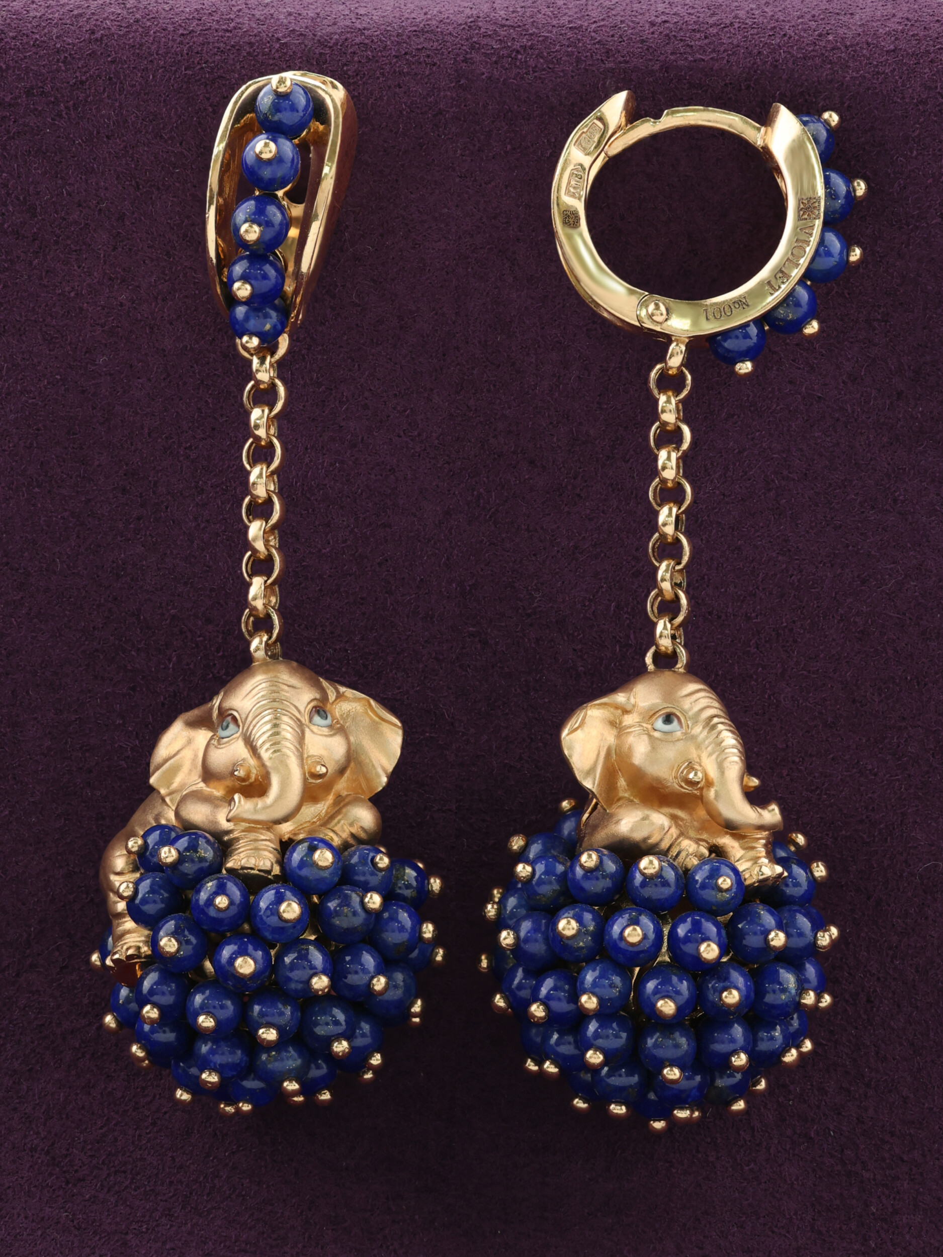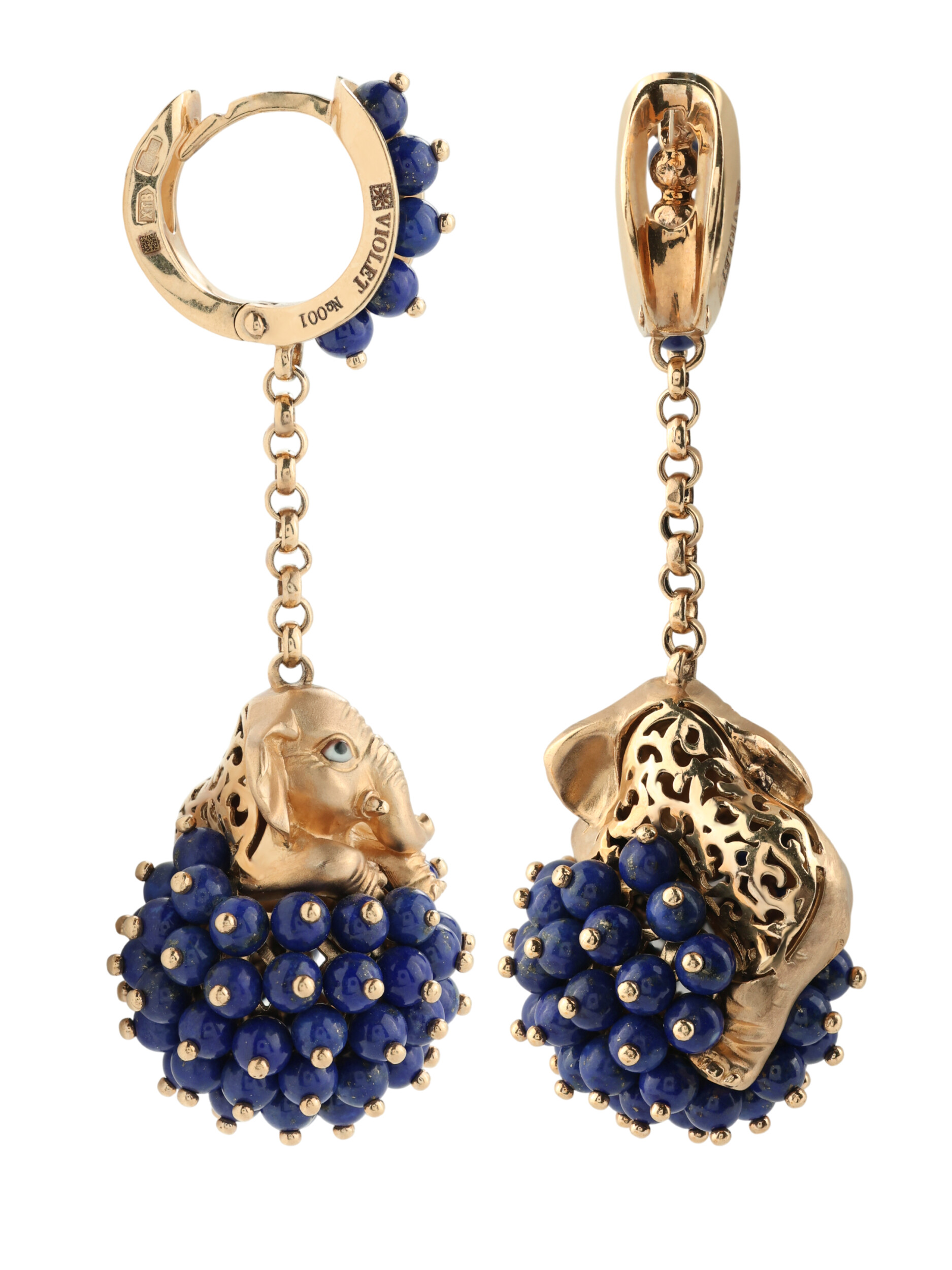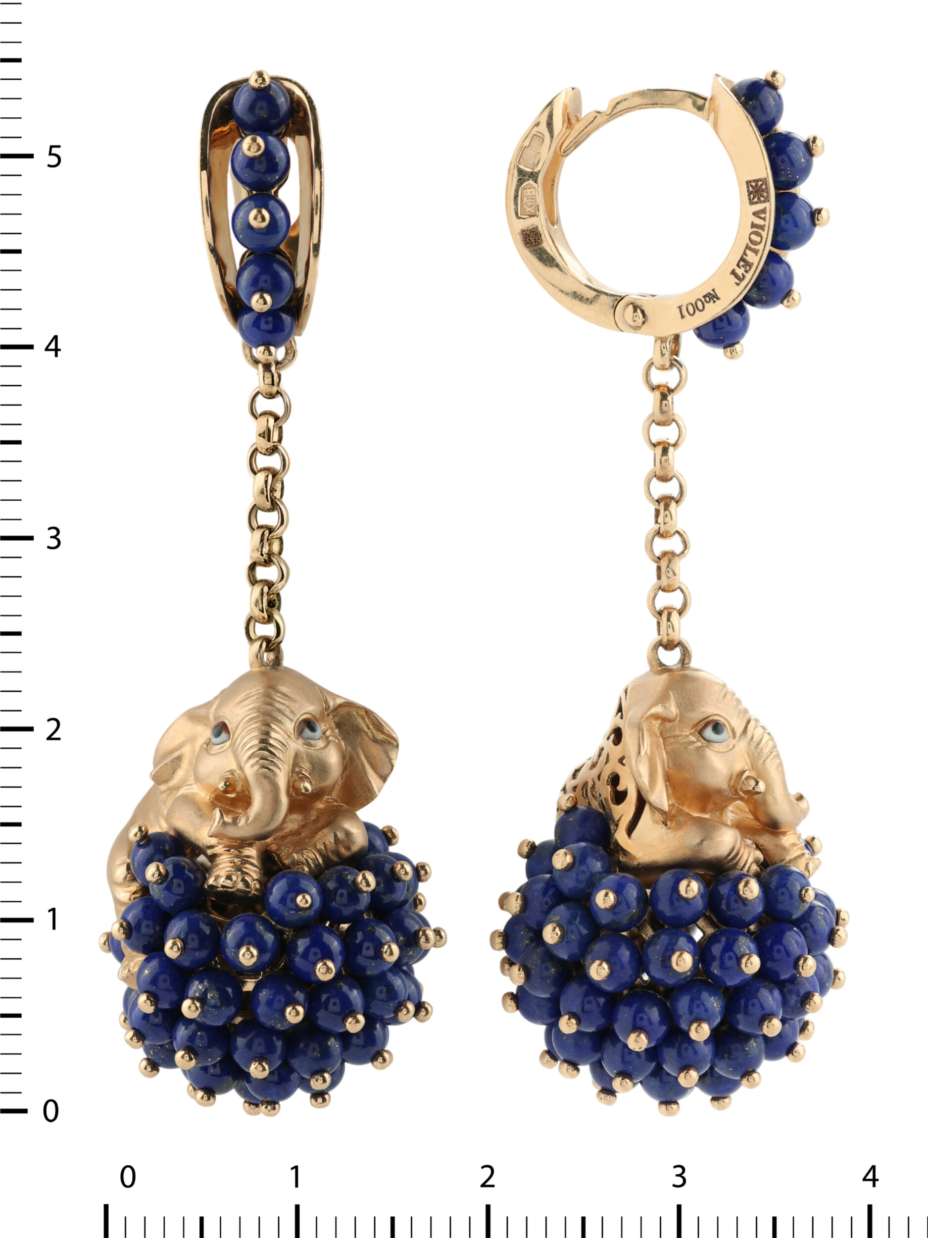 Серьги из золота c эмалью и лазуритом
