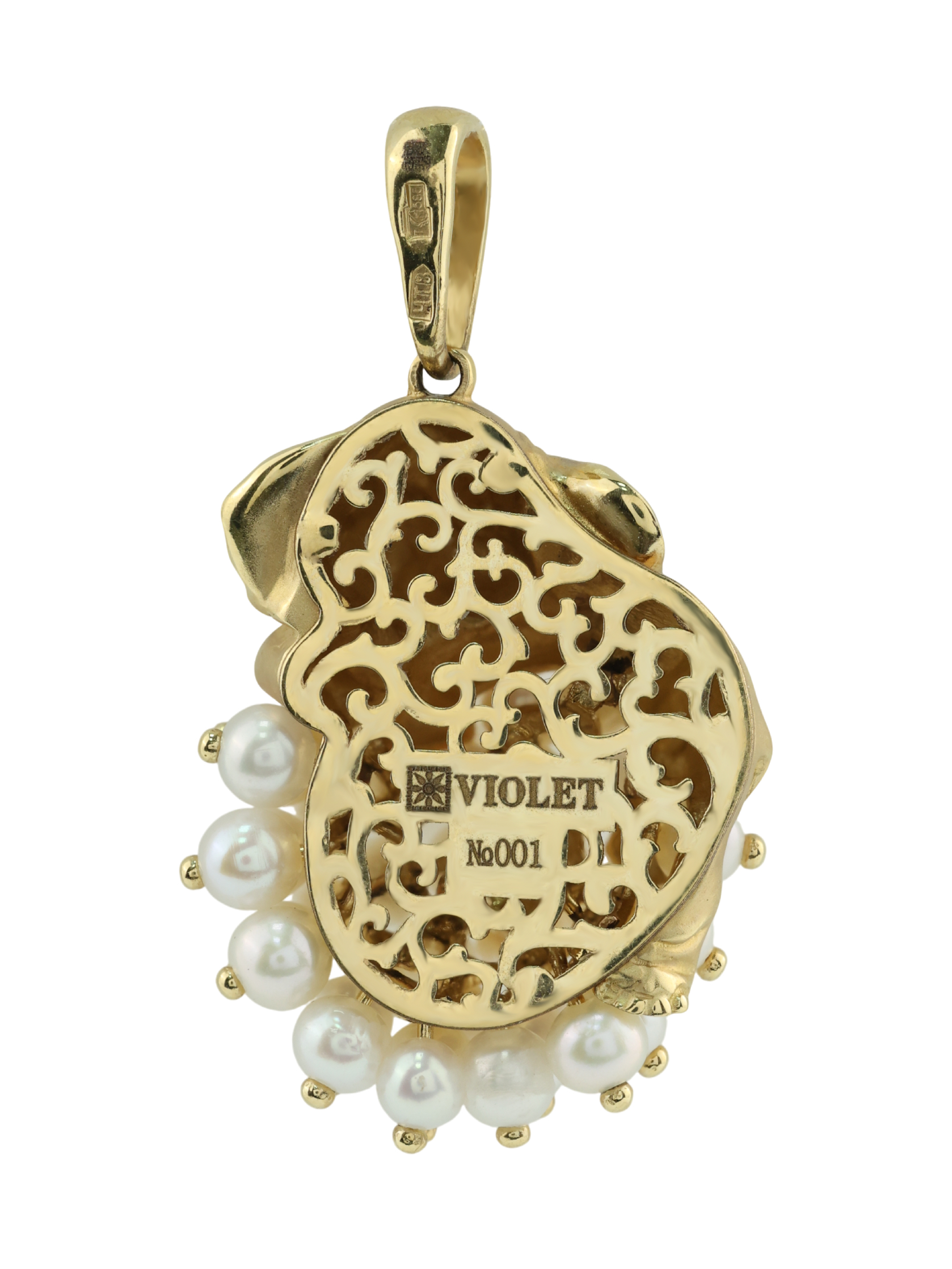 Подвеска из лимонного золота c эмалью и жемчугом