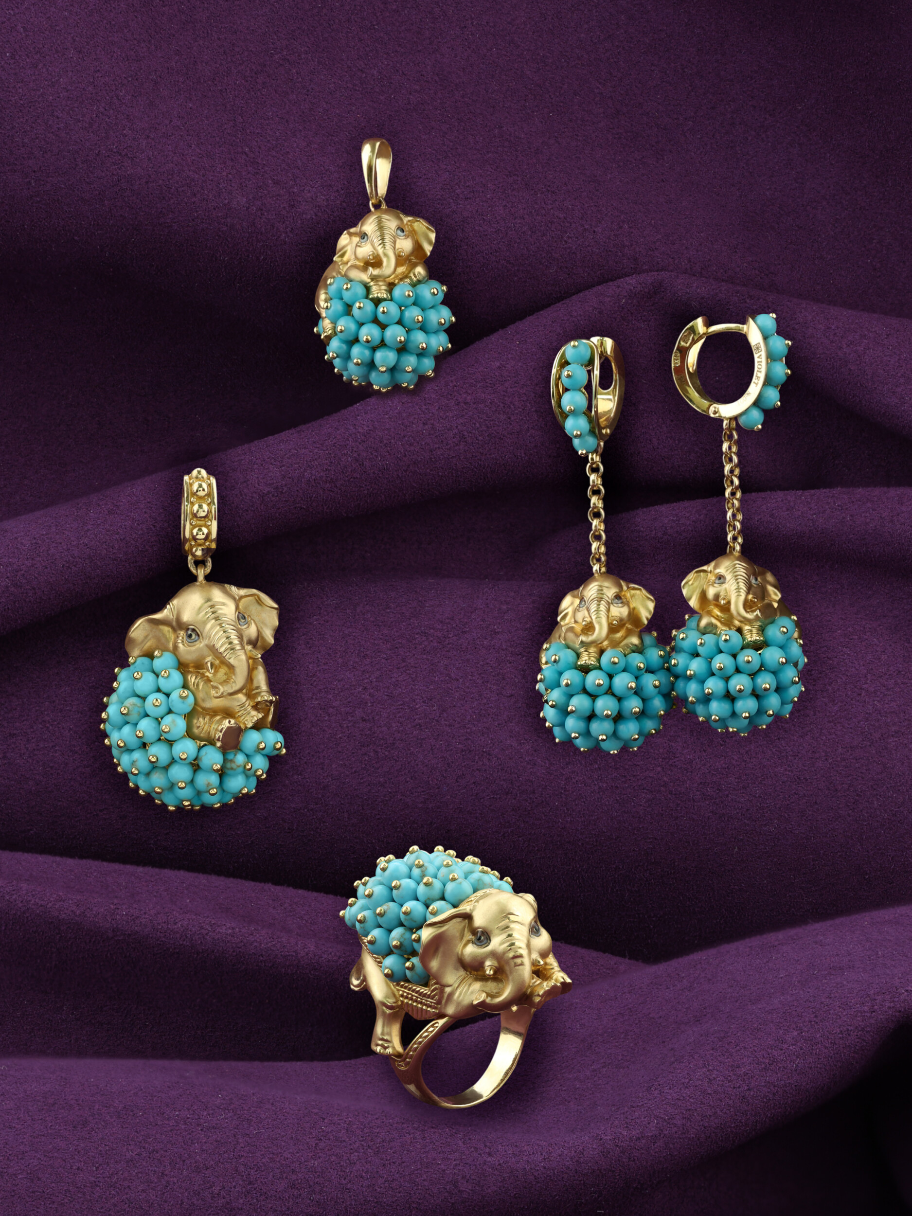 Подвеска из лимонного золота c эмалью и бирюзой