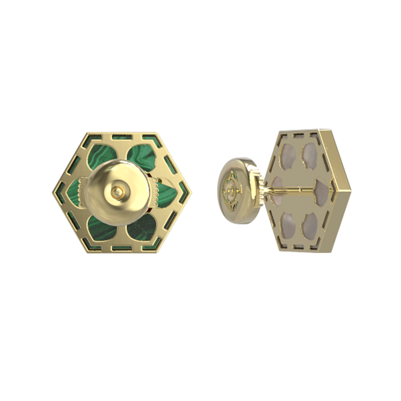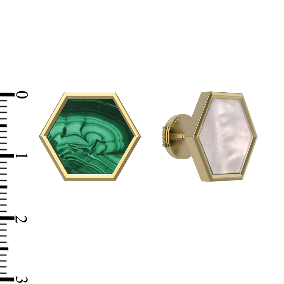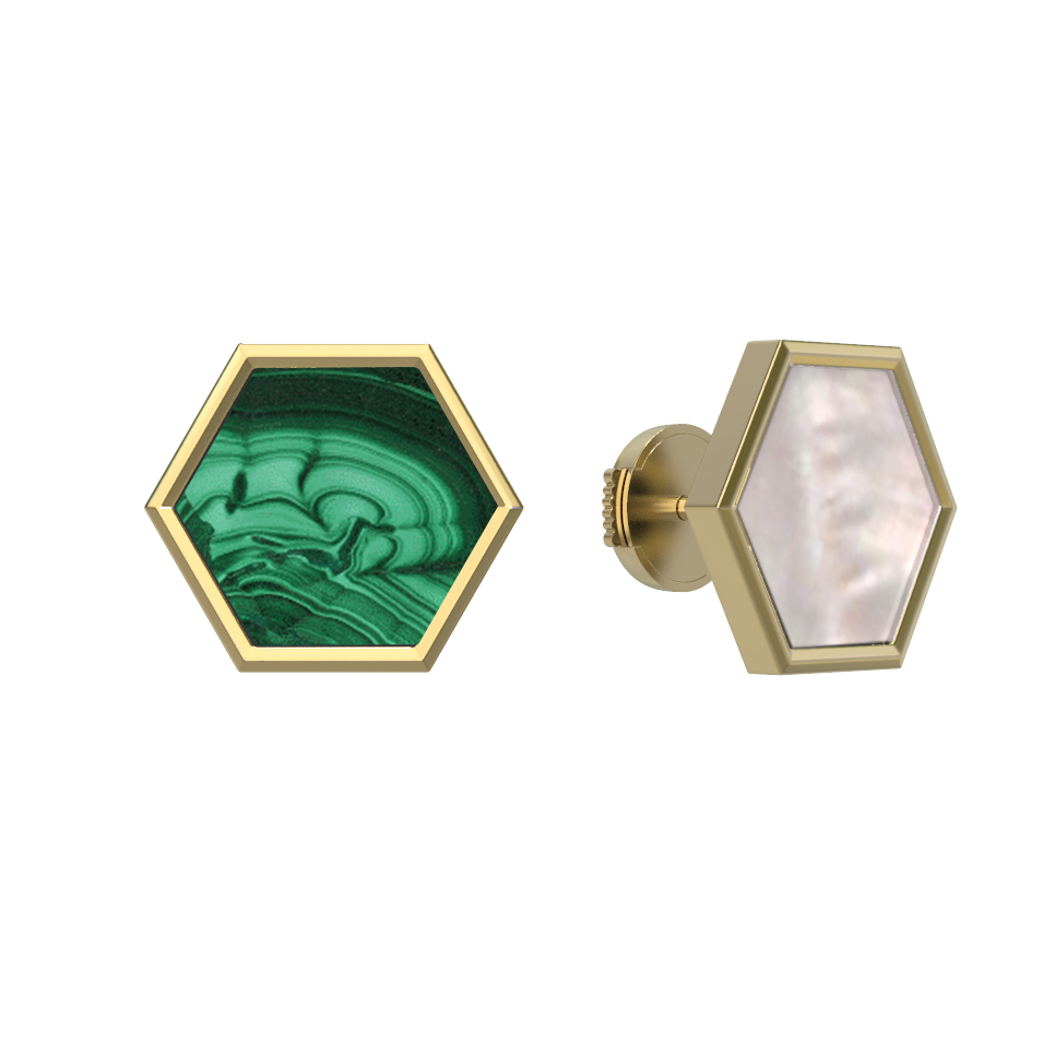 Серьги из лимонного золота c малахитом и перламутром