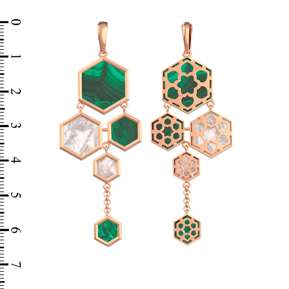 Подвеска из золота c малахитом и перламутром