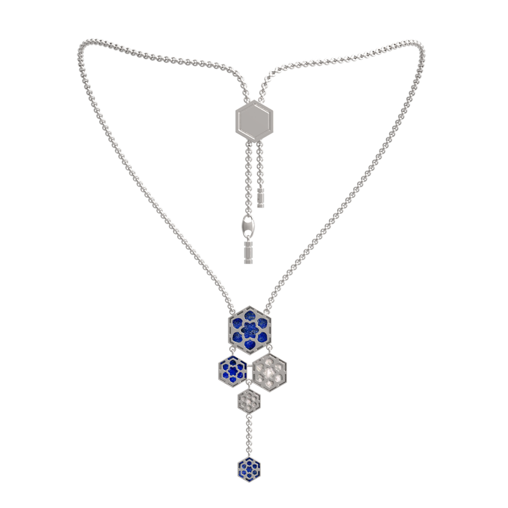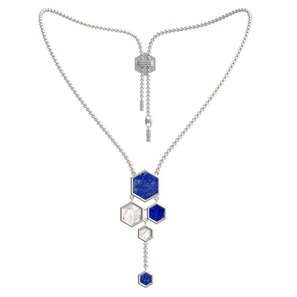 Колье из белого золота c лазуритом и перламутром