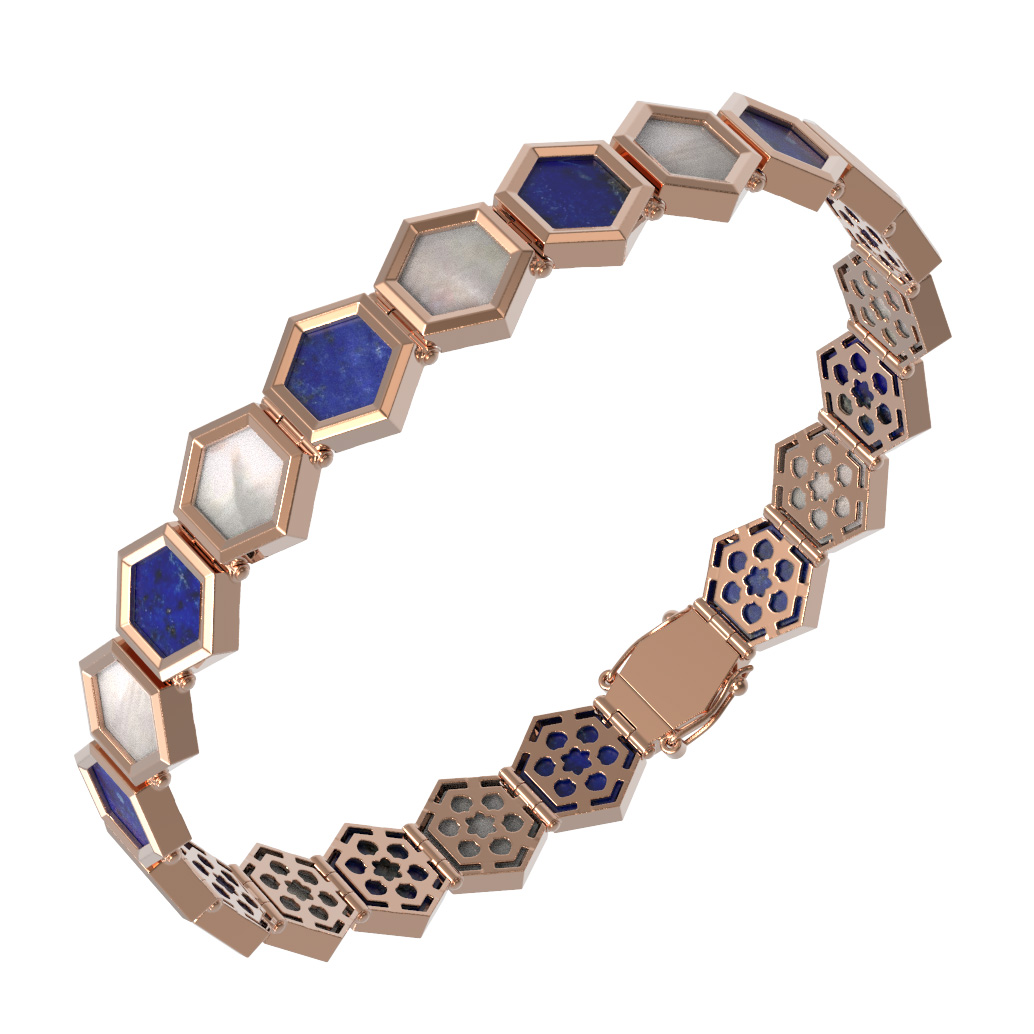 Браслет из золота c лазуритом и перламутром