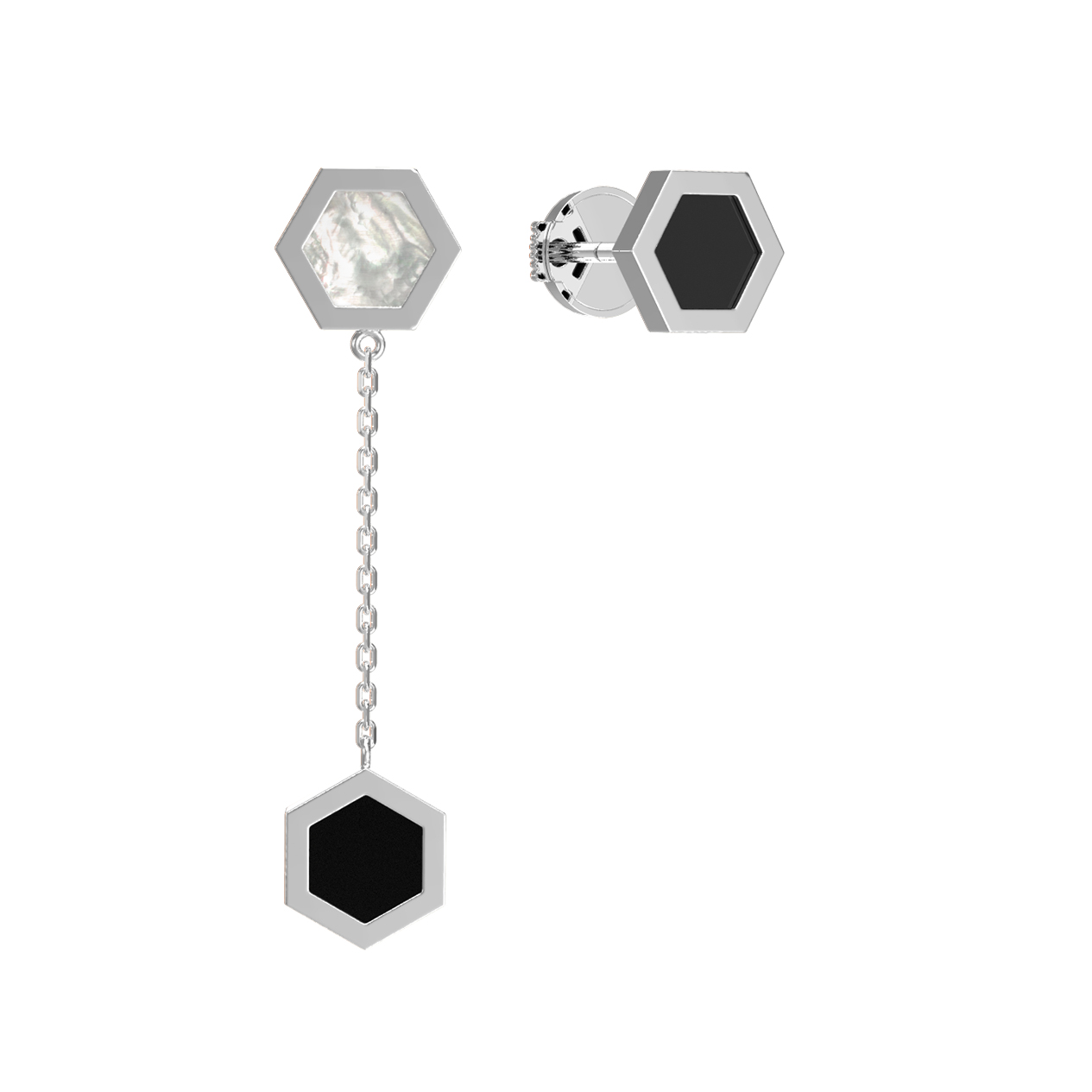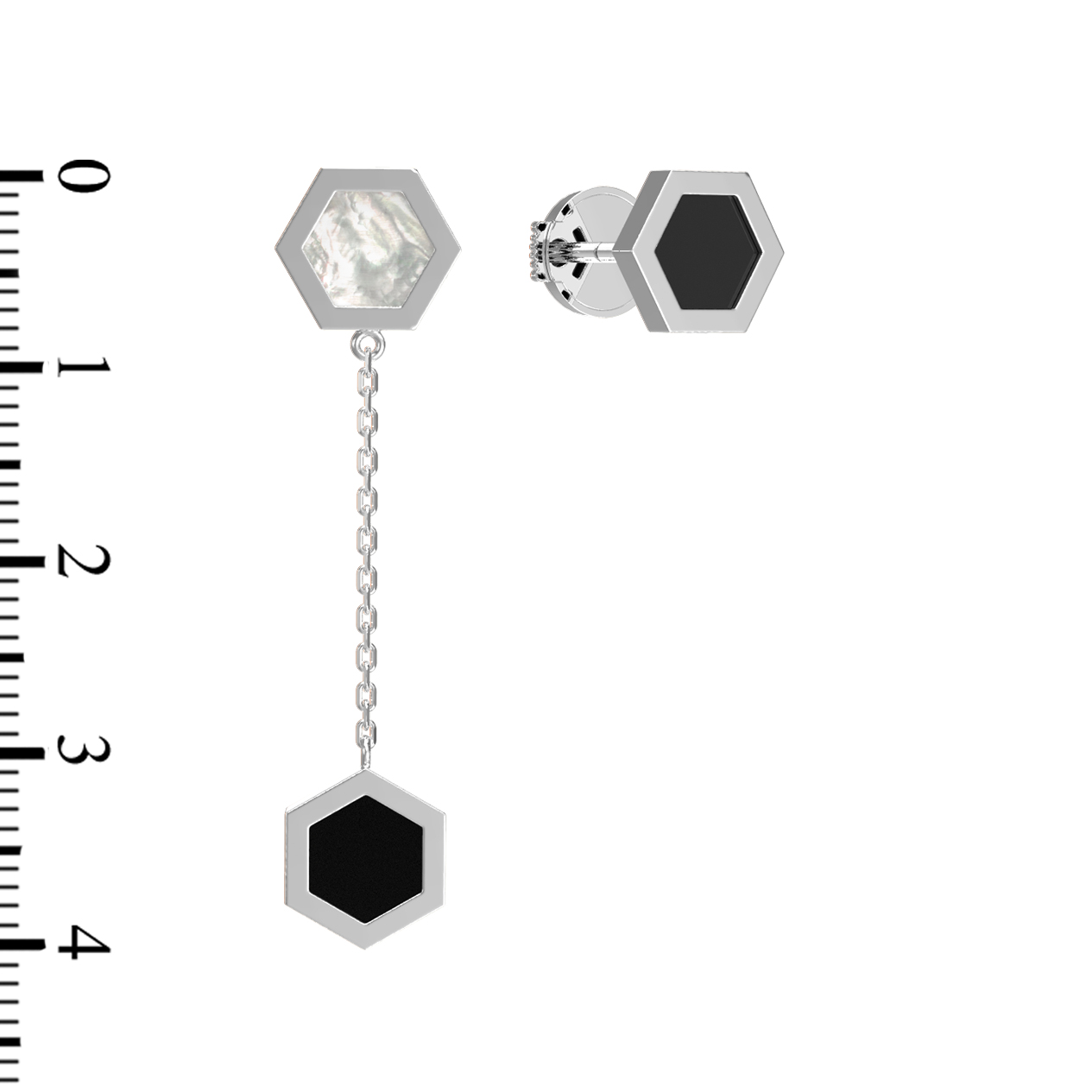 Серьги из белого золота c ониксом и перламутром