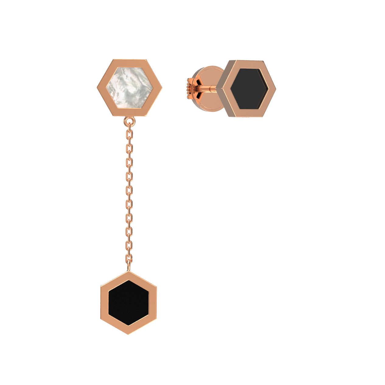 Серьги из золота c ониксом и перламутром