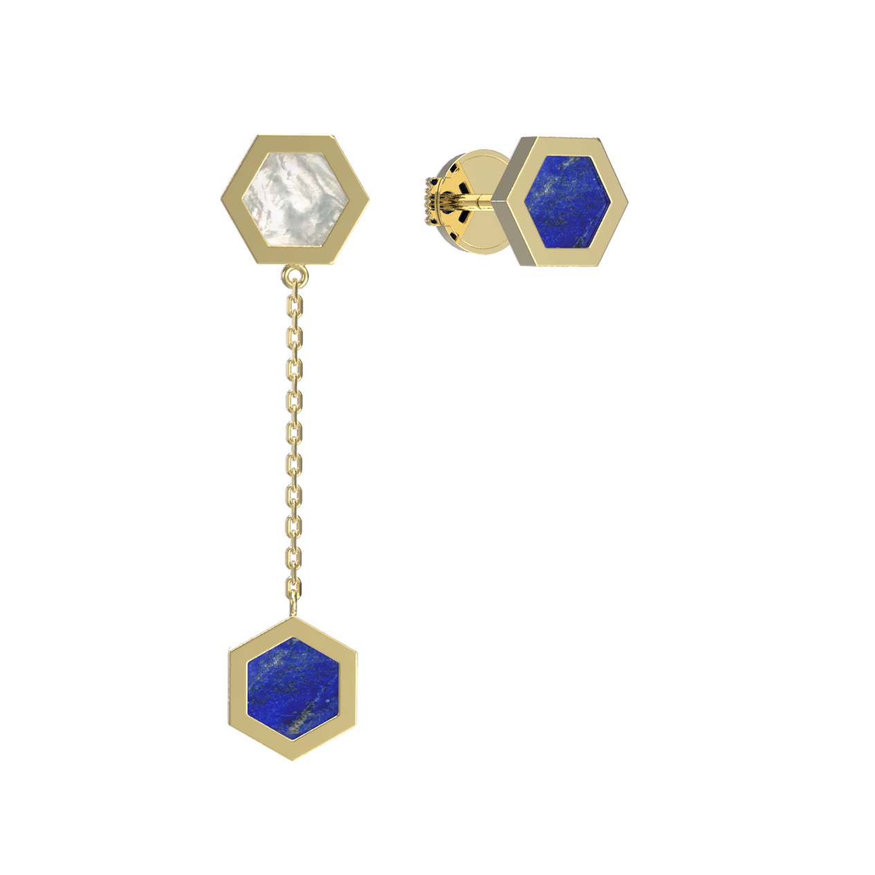 Серьги из лимонного золота c лазуритом и перламутром