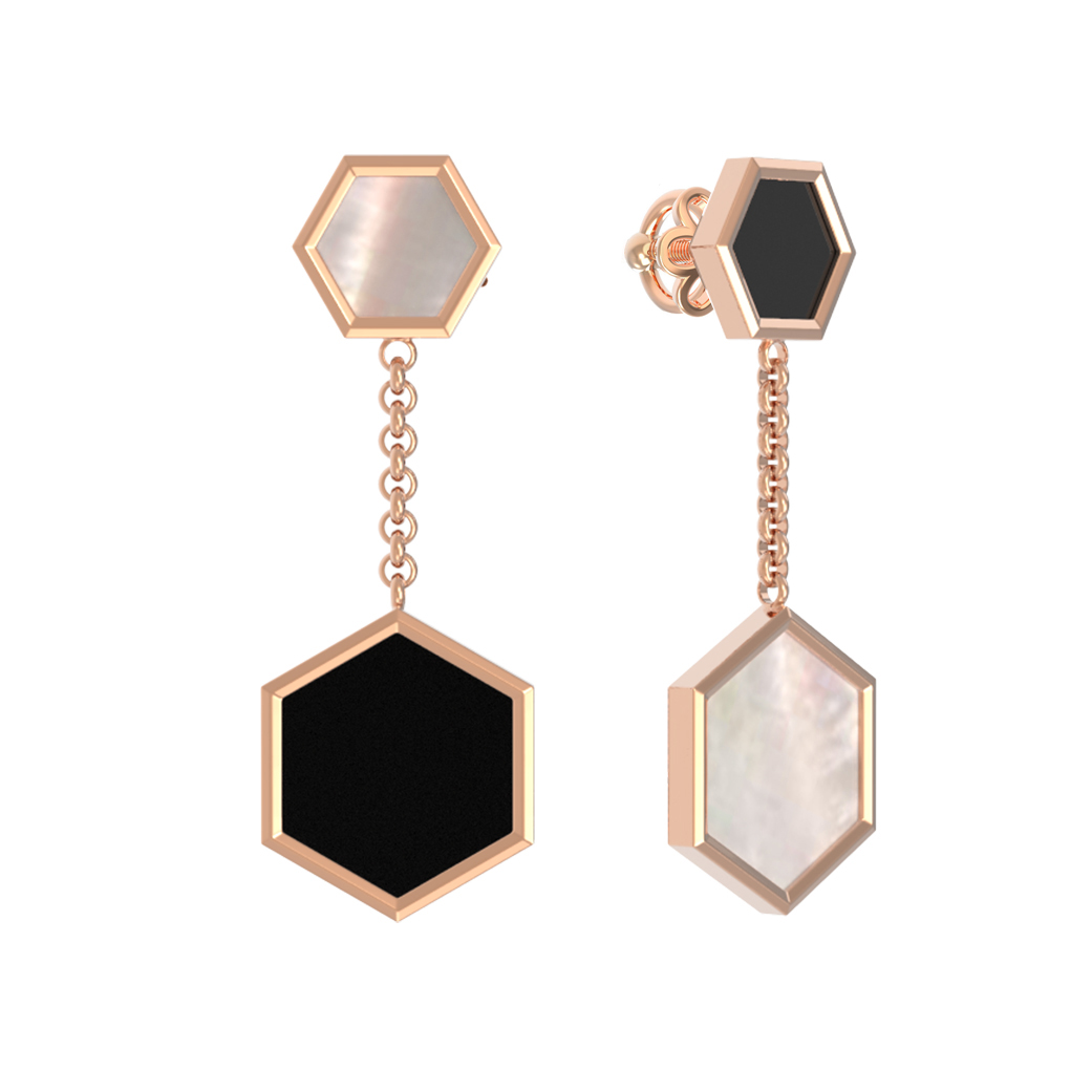 Серьги из золота c ониксом и перламутром
