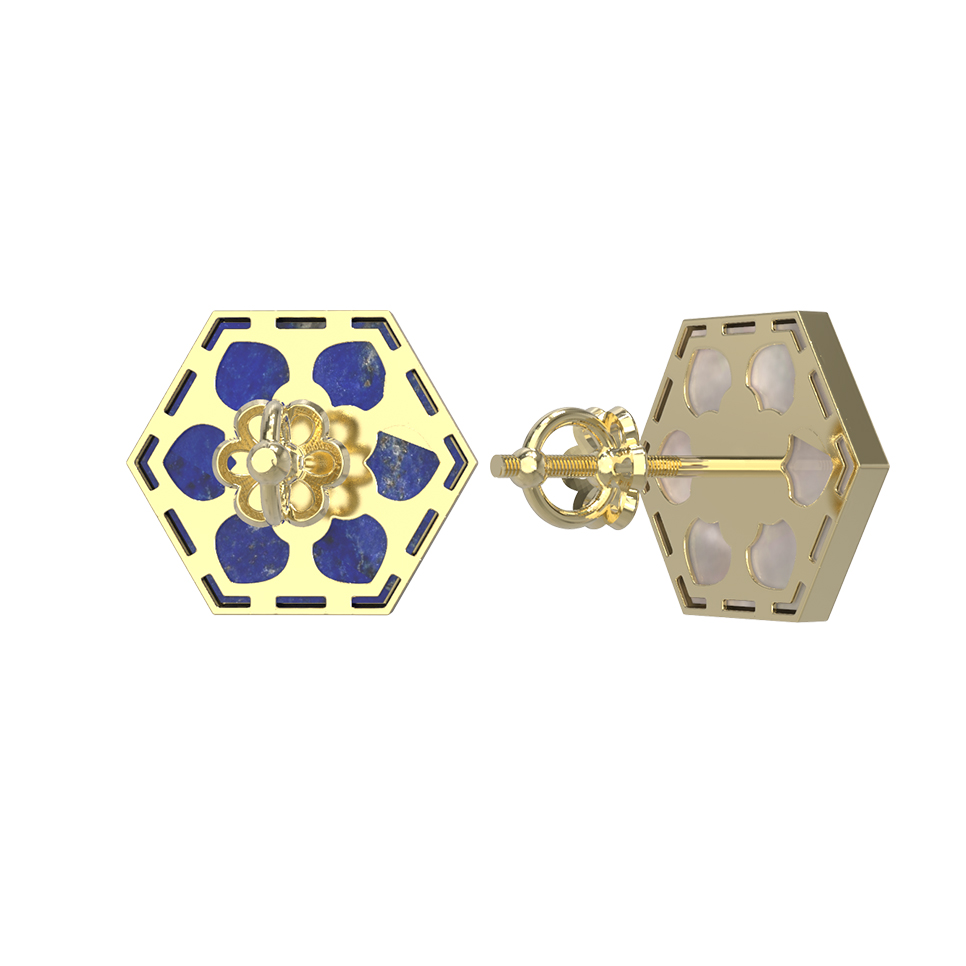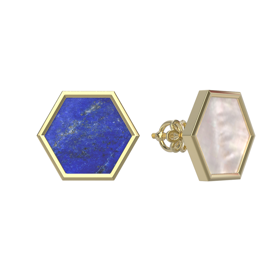 Серьги из лимонного золота c лазуритом и перламутром