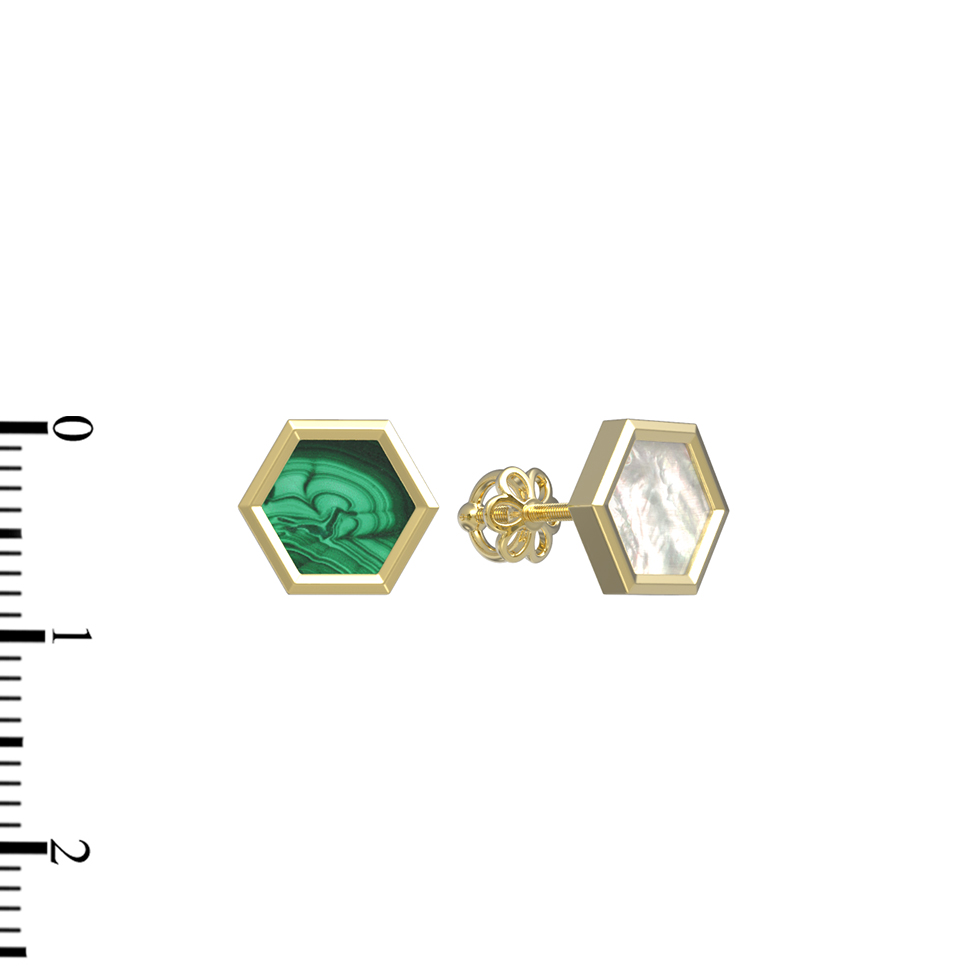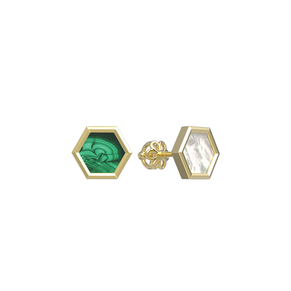 Серьги из лимонного золота c малахитом и перламутром