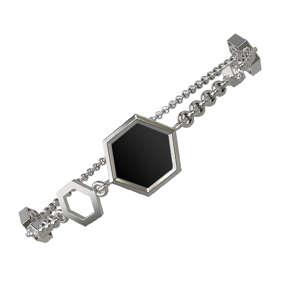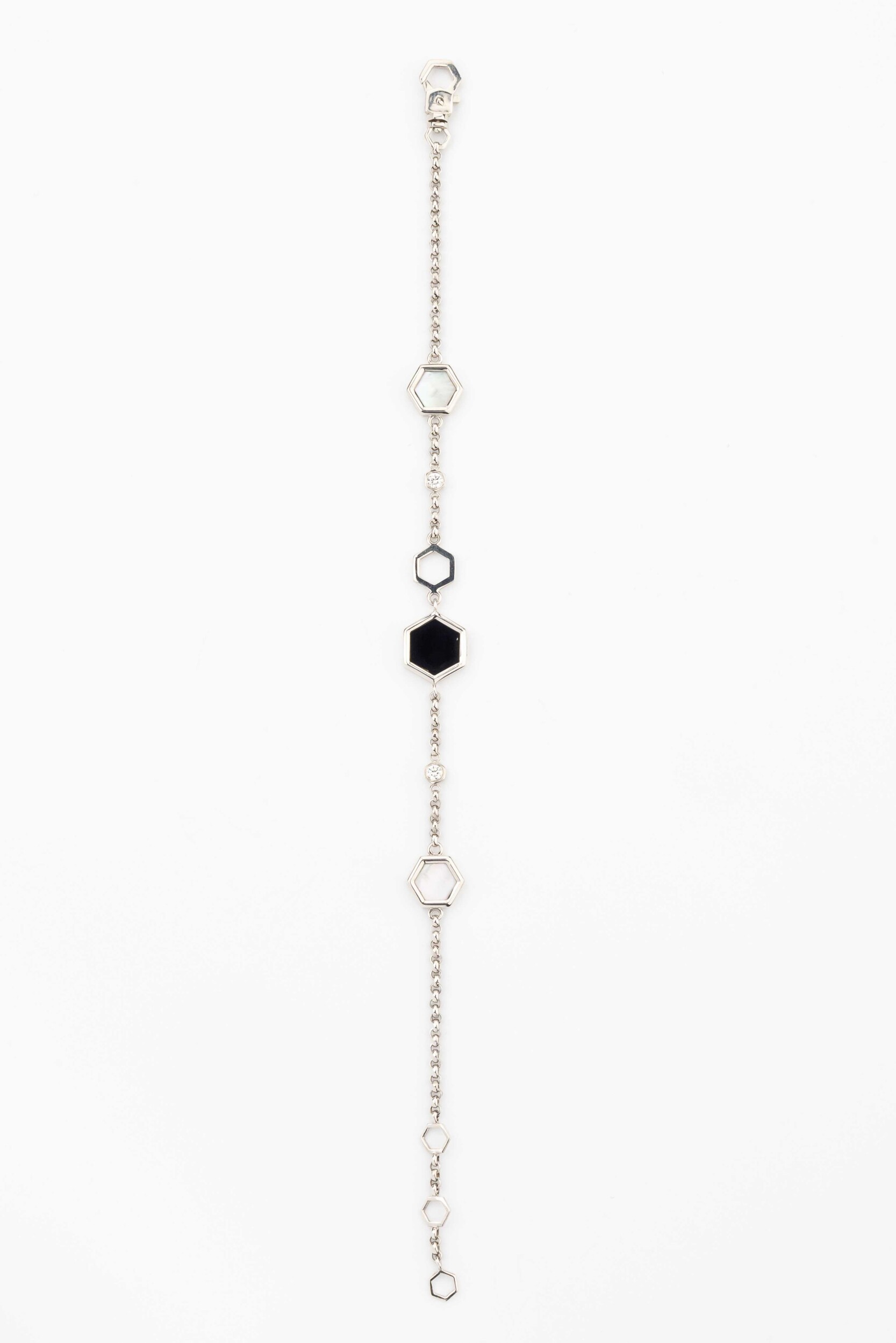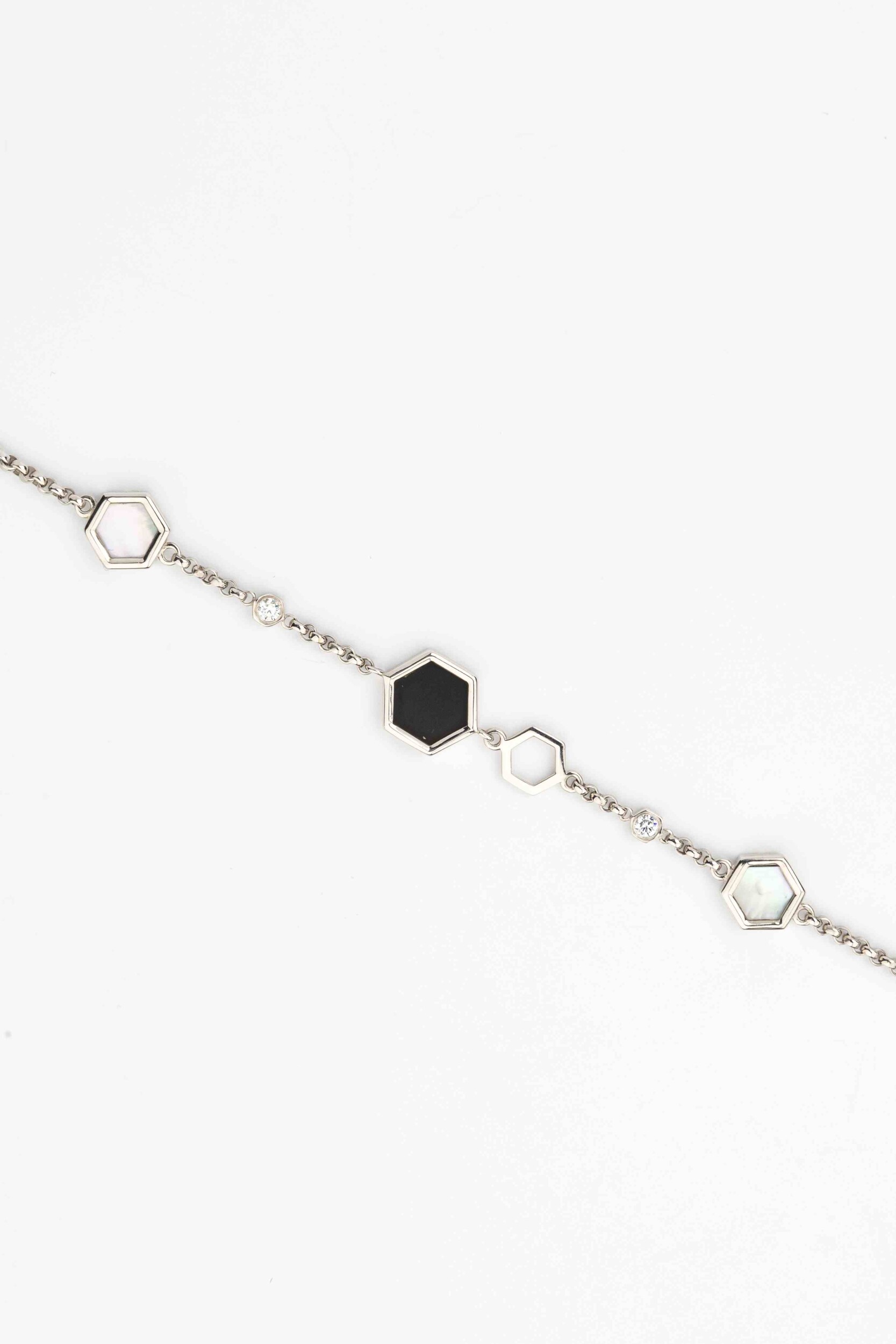 Браслет из белого золота c бриллиантами, ониксом и перламутром