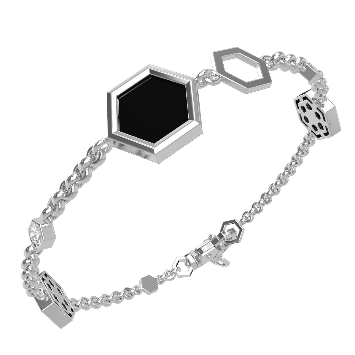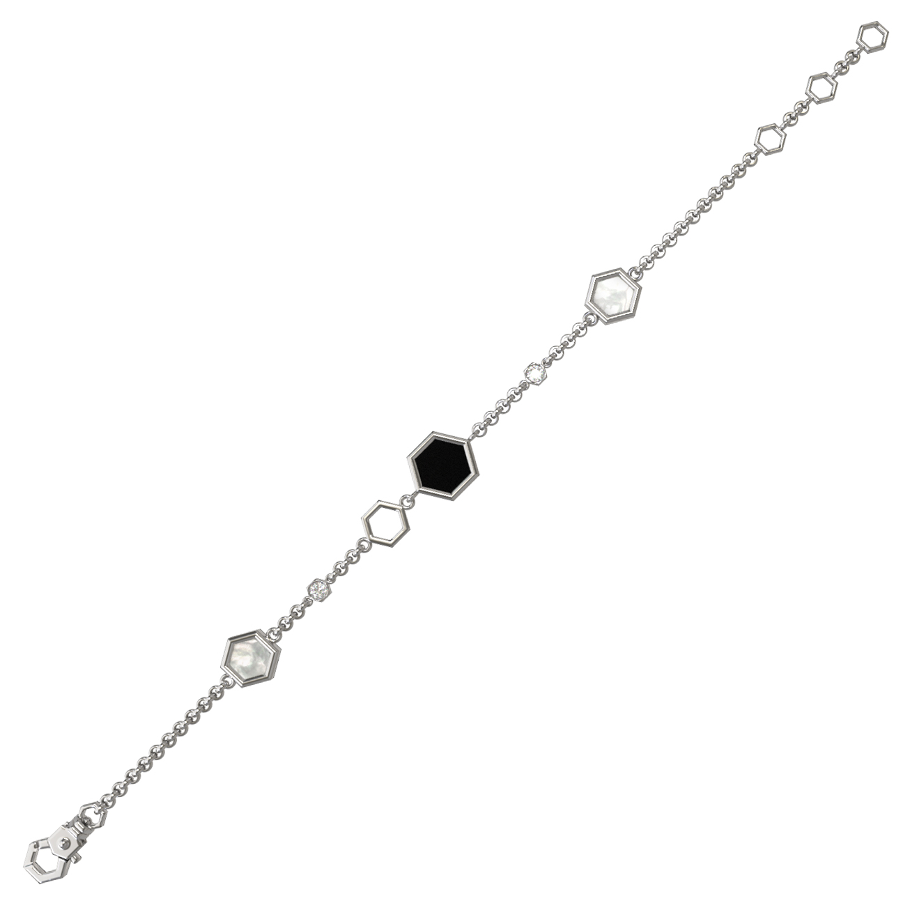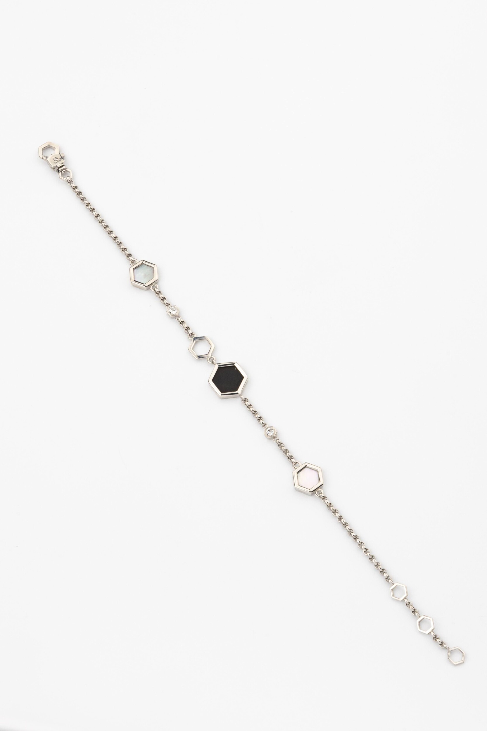 Браслет из белого золота c бриллиантами, ониксом и перламутром
