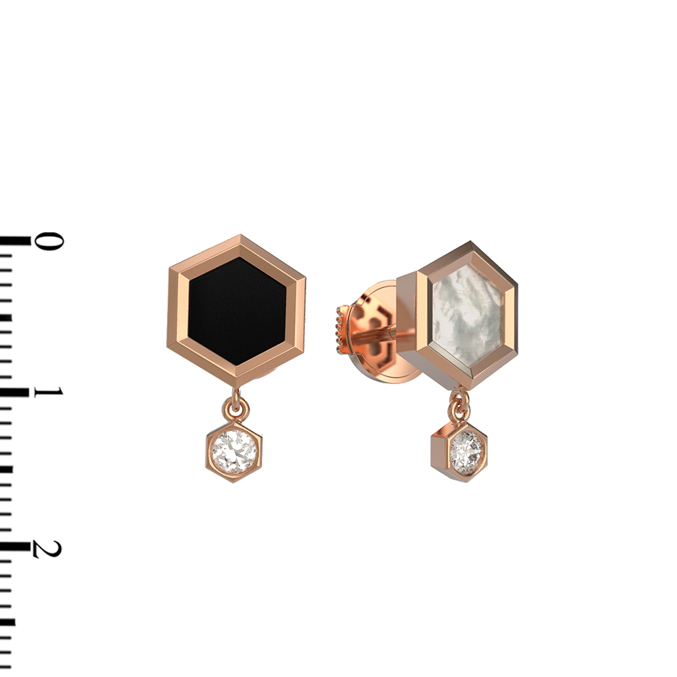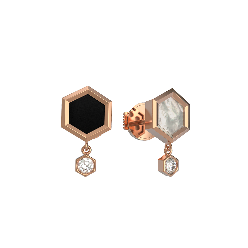 Серьги из золота c бриллиантами, ониксом и перламутром