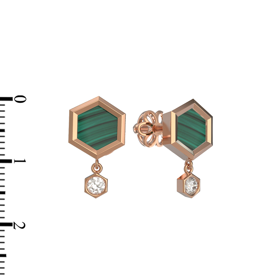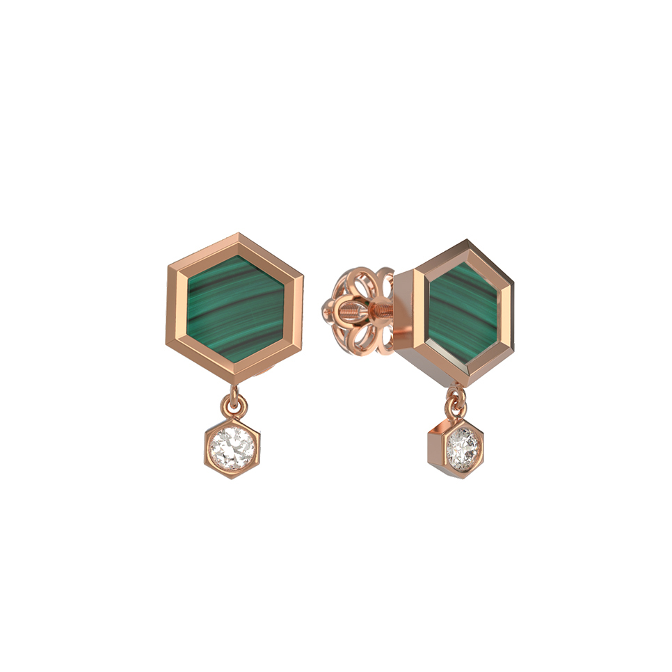 Серьги из золота c бриллиантами и малахитом