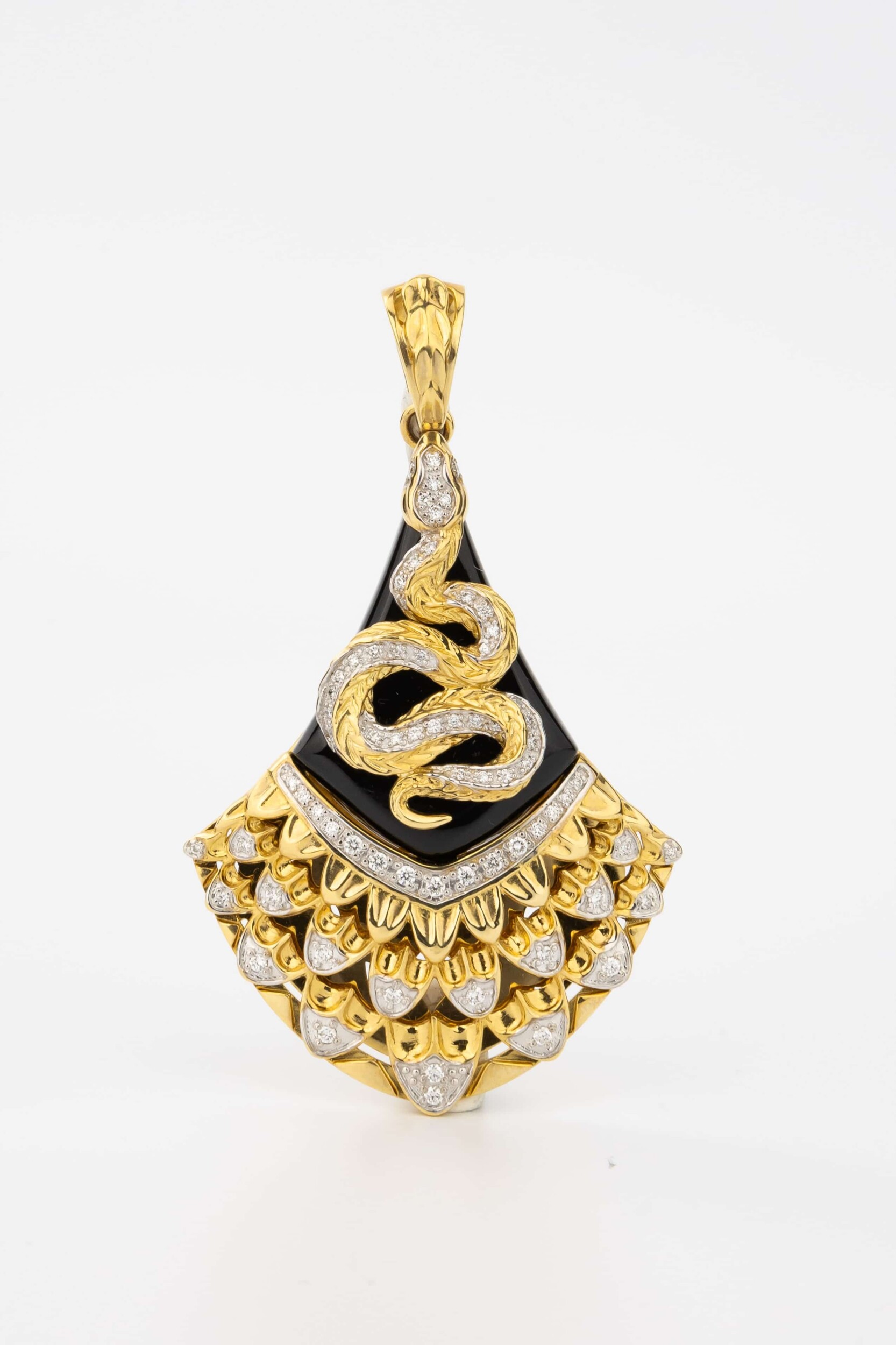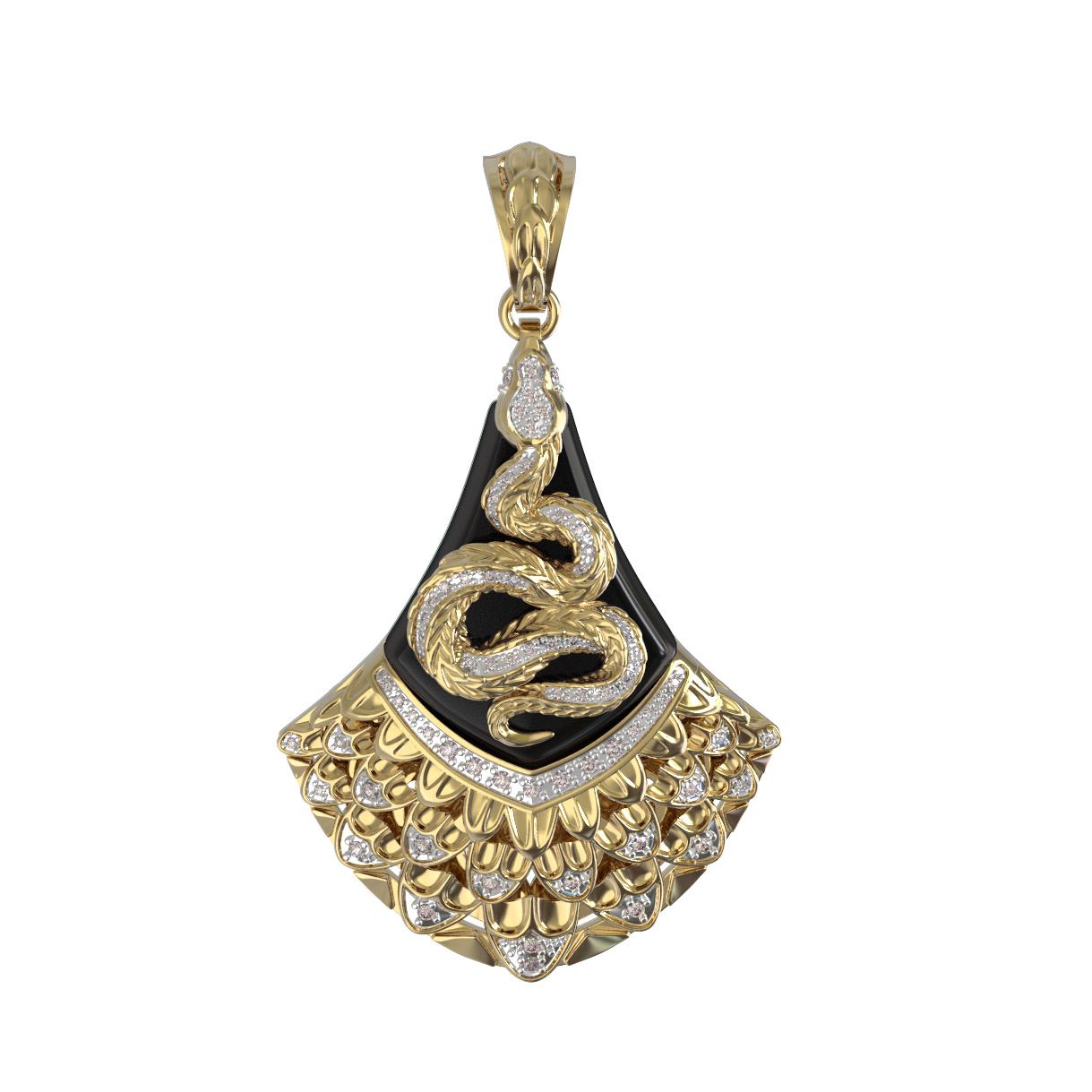 Подвеска из лимонного золота c бриллиантами и ониксом