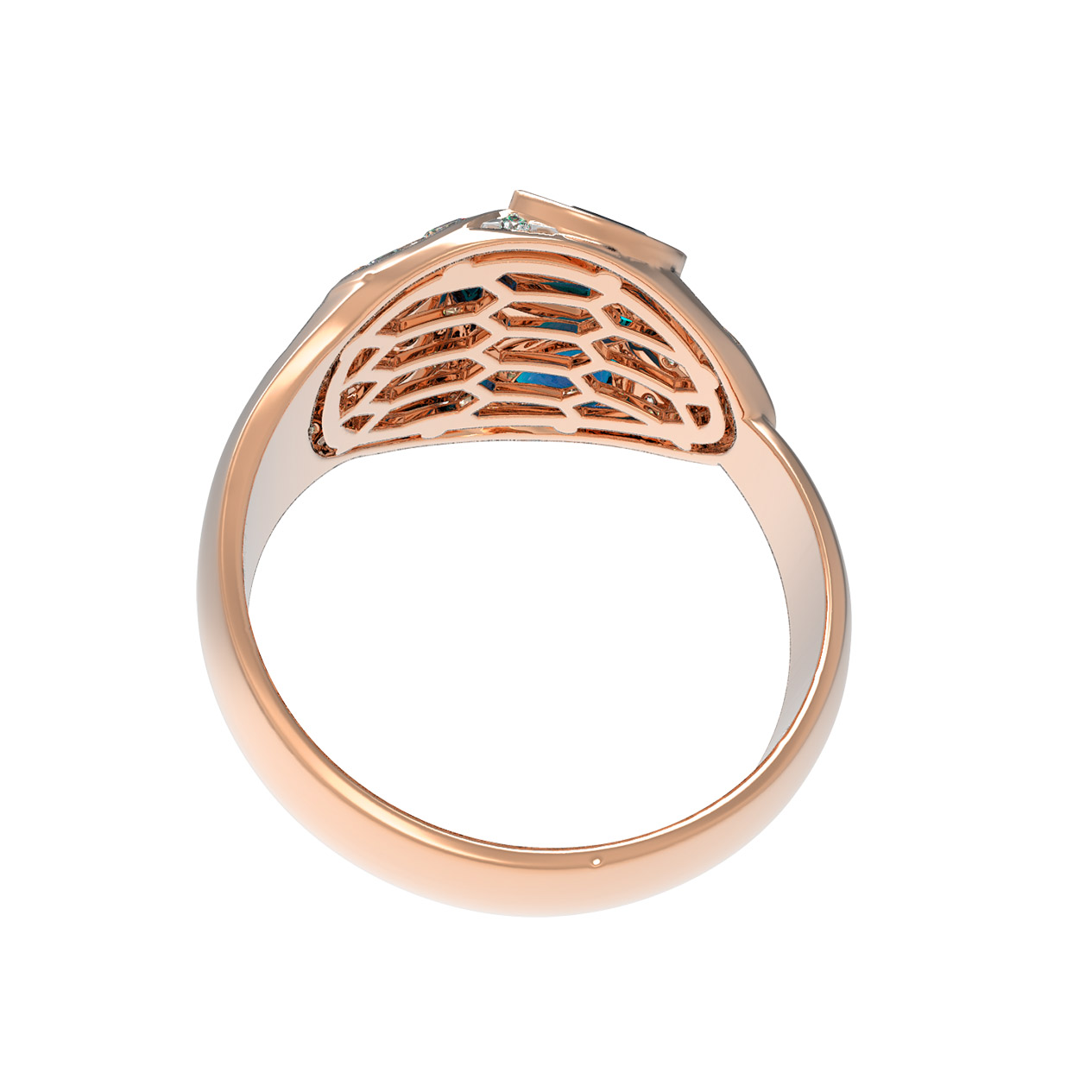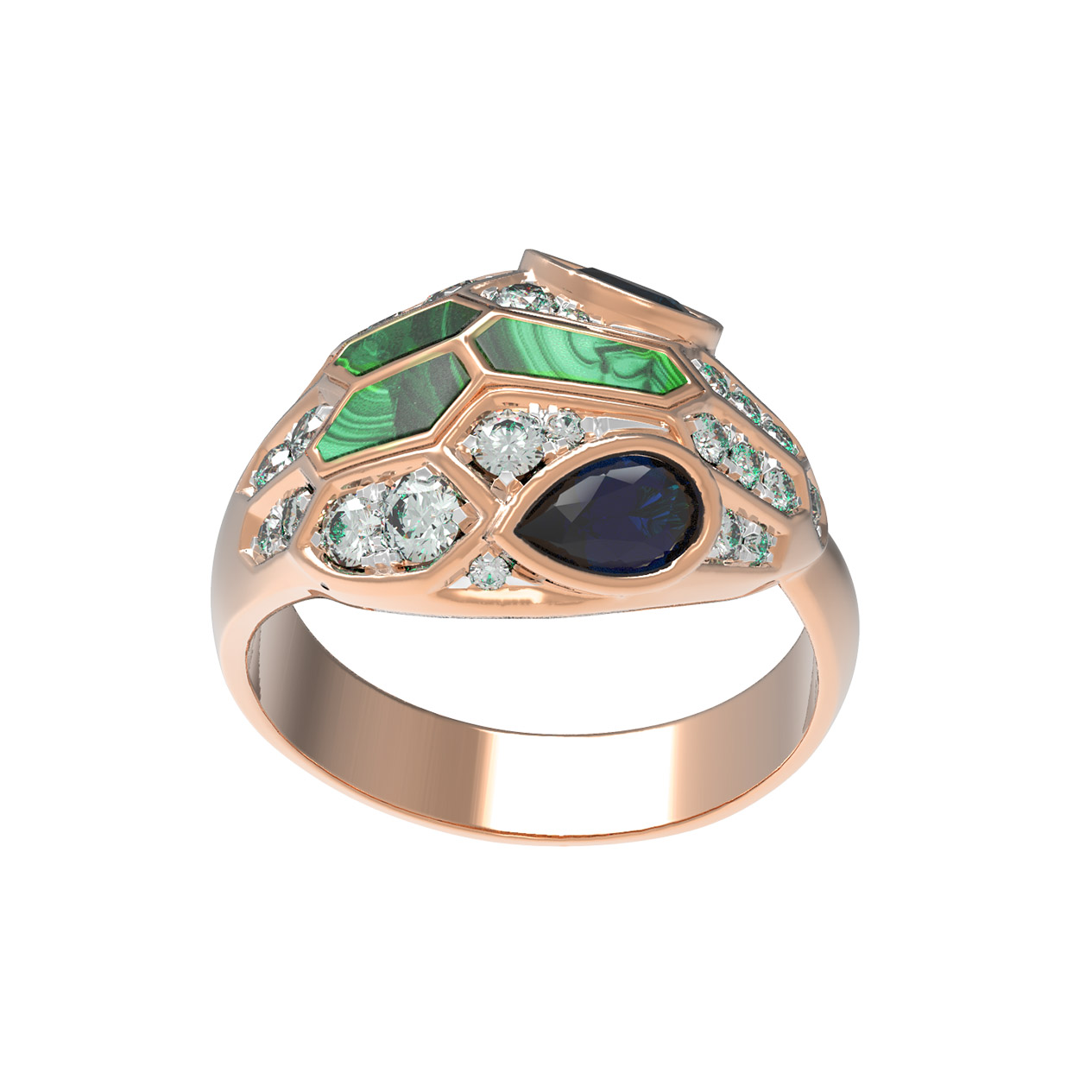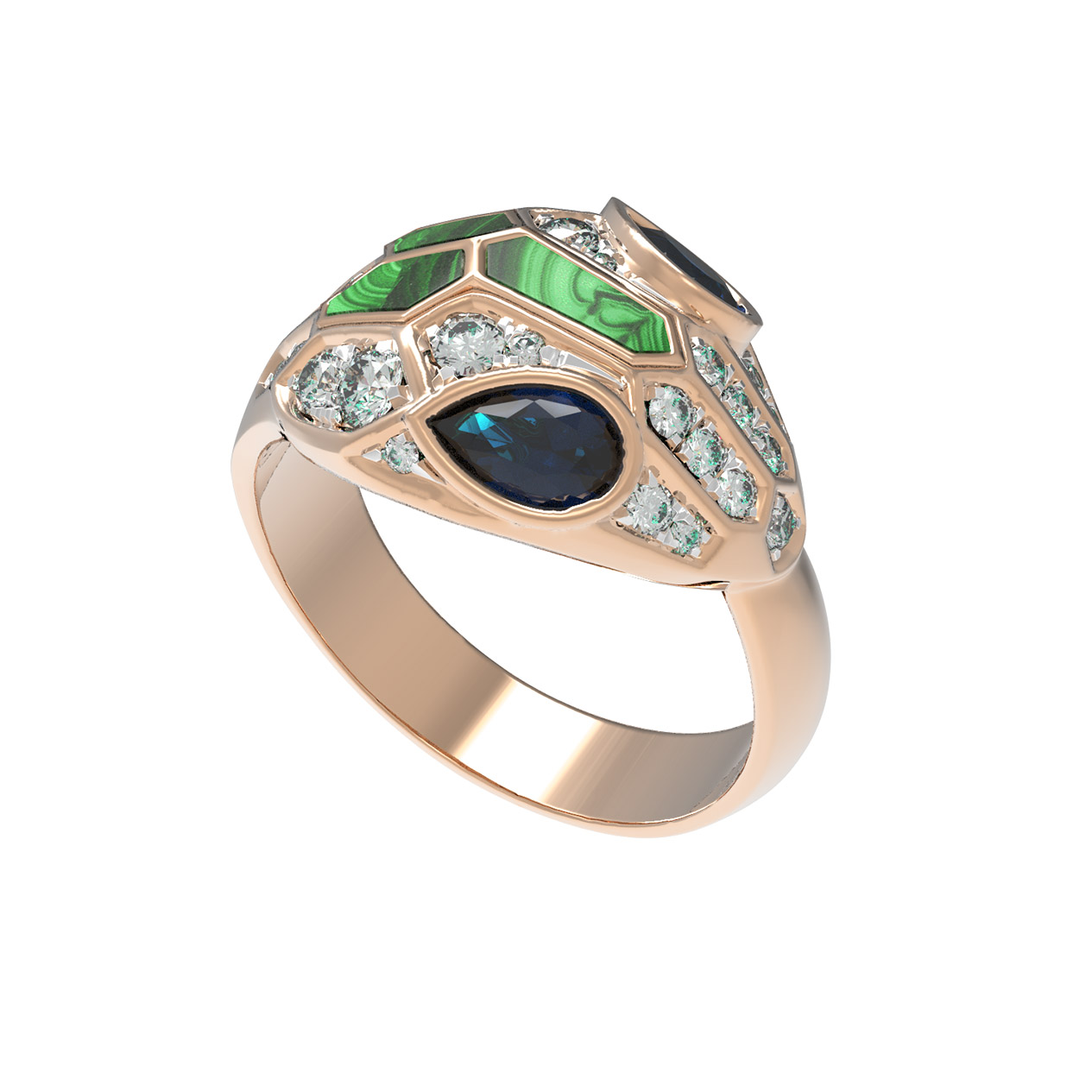 Кольцо из золота c бриллиантами, сапфиром и малахитом
