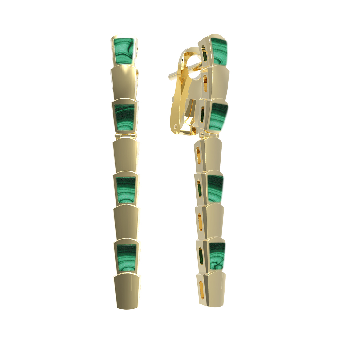 Серьги из лимонного золота c малахитом