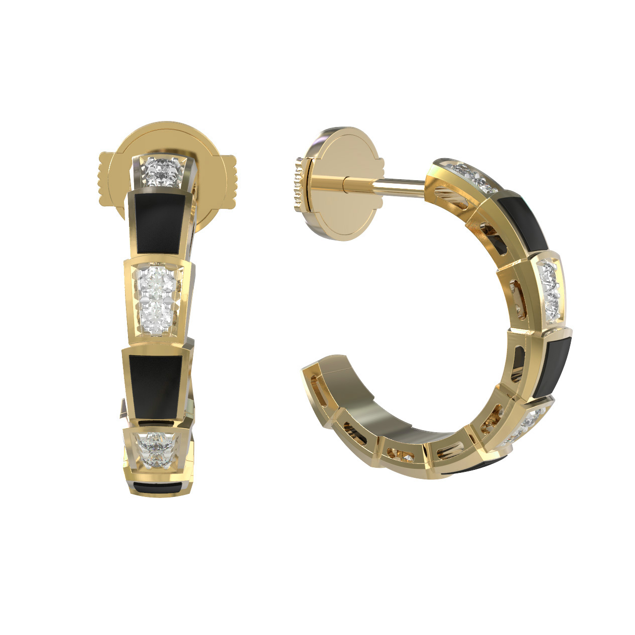 Серьги из лимонного золота c бриллиантами и ониксом
