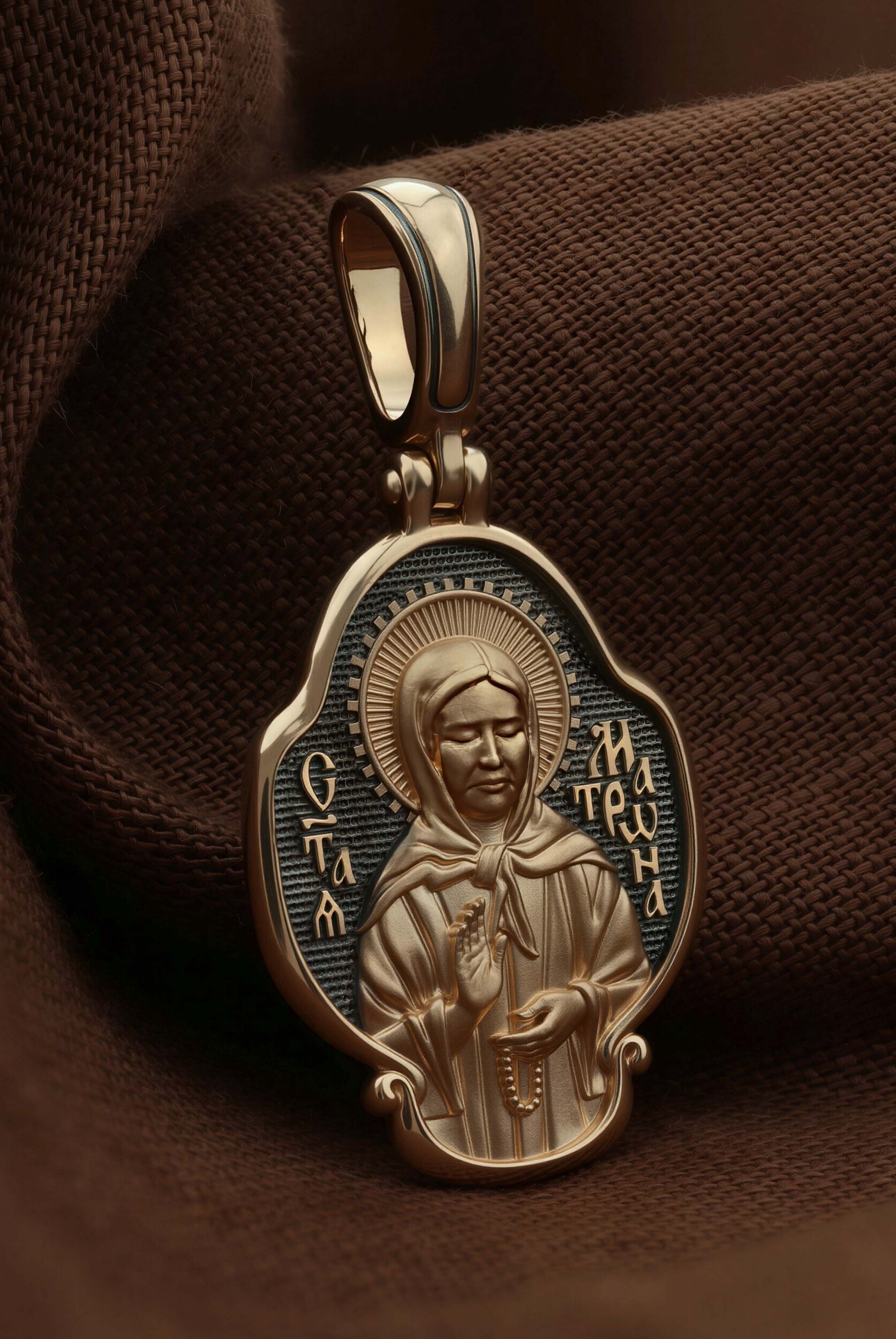 На обороте образка написана молитва: «О Блаженная мати Матроно, услыши насгрешных, молящихся к Тебе».