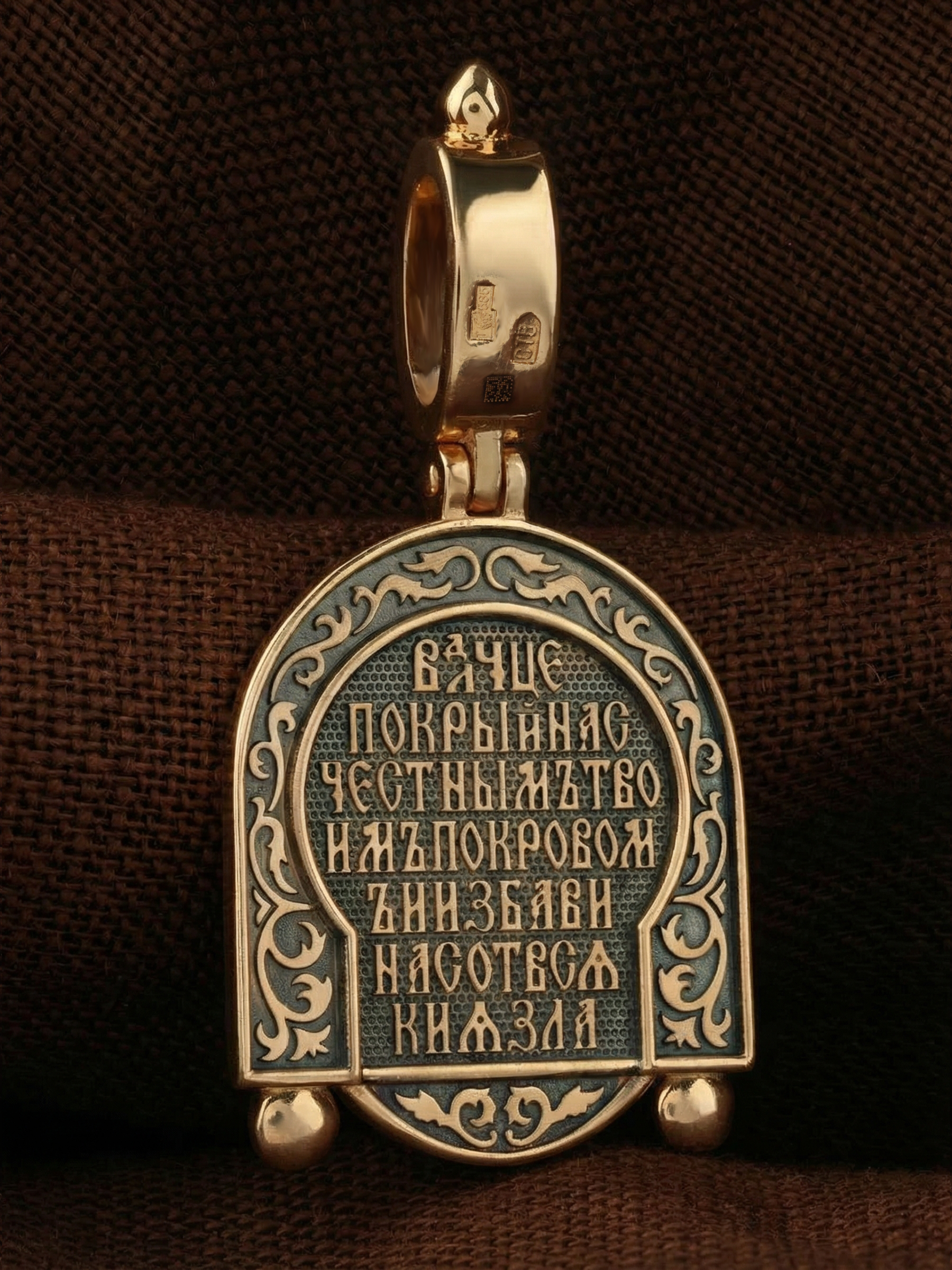 На обороте образка написано: «Владычице, покрый нас Честным Твоим покровом и избави нас от всякия зла».