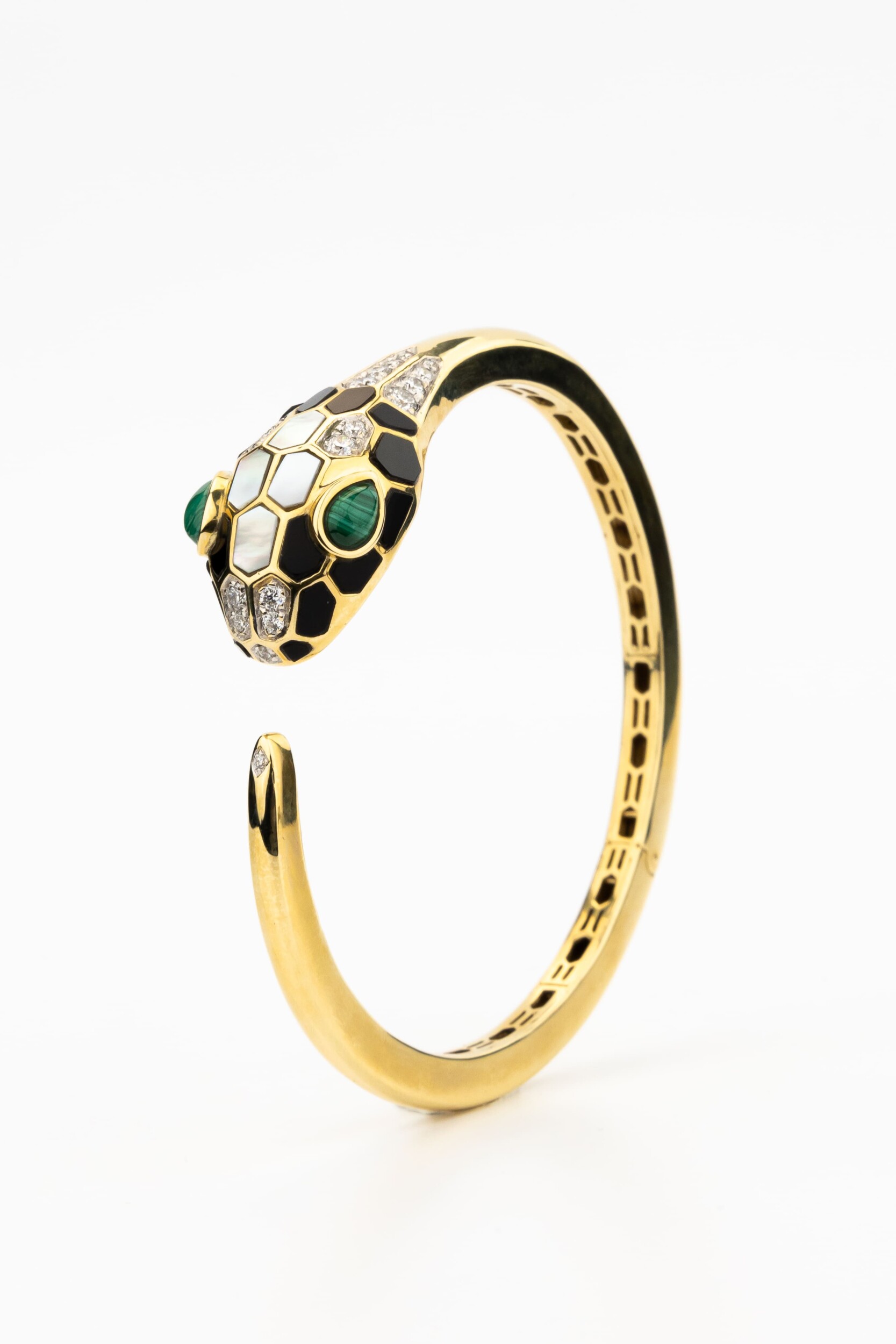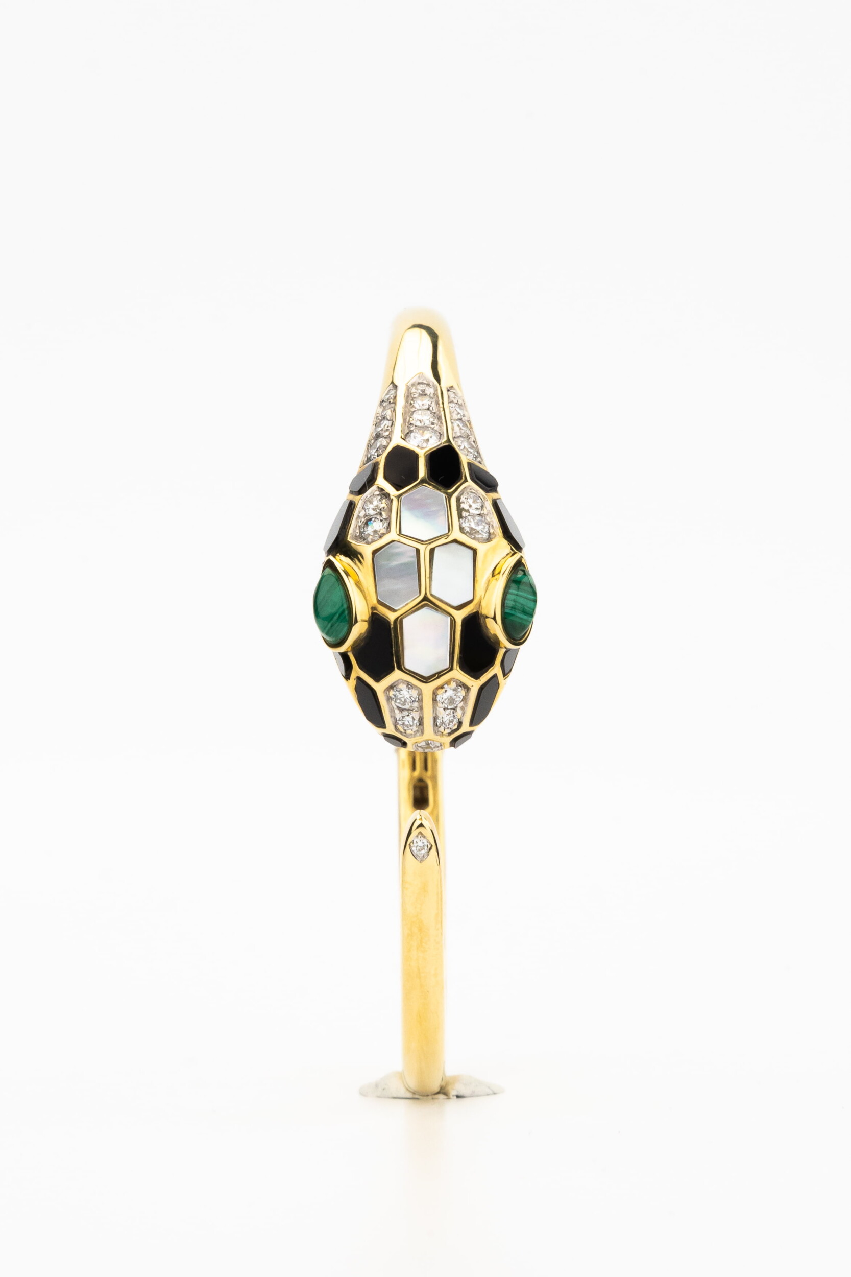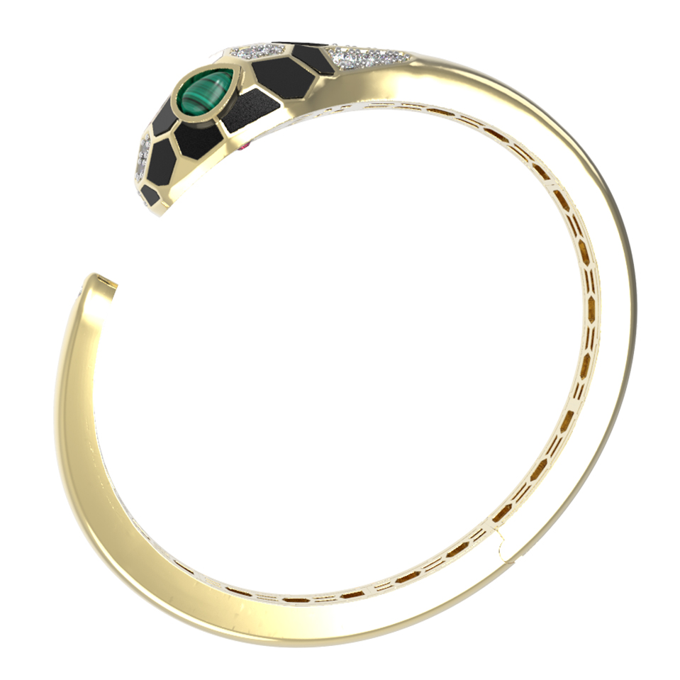 Браслет из лимонного золота c бриллиантами, рубином, ониксом, малахитом и перламутром