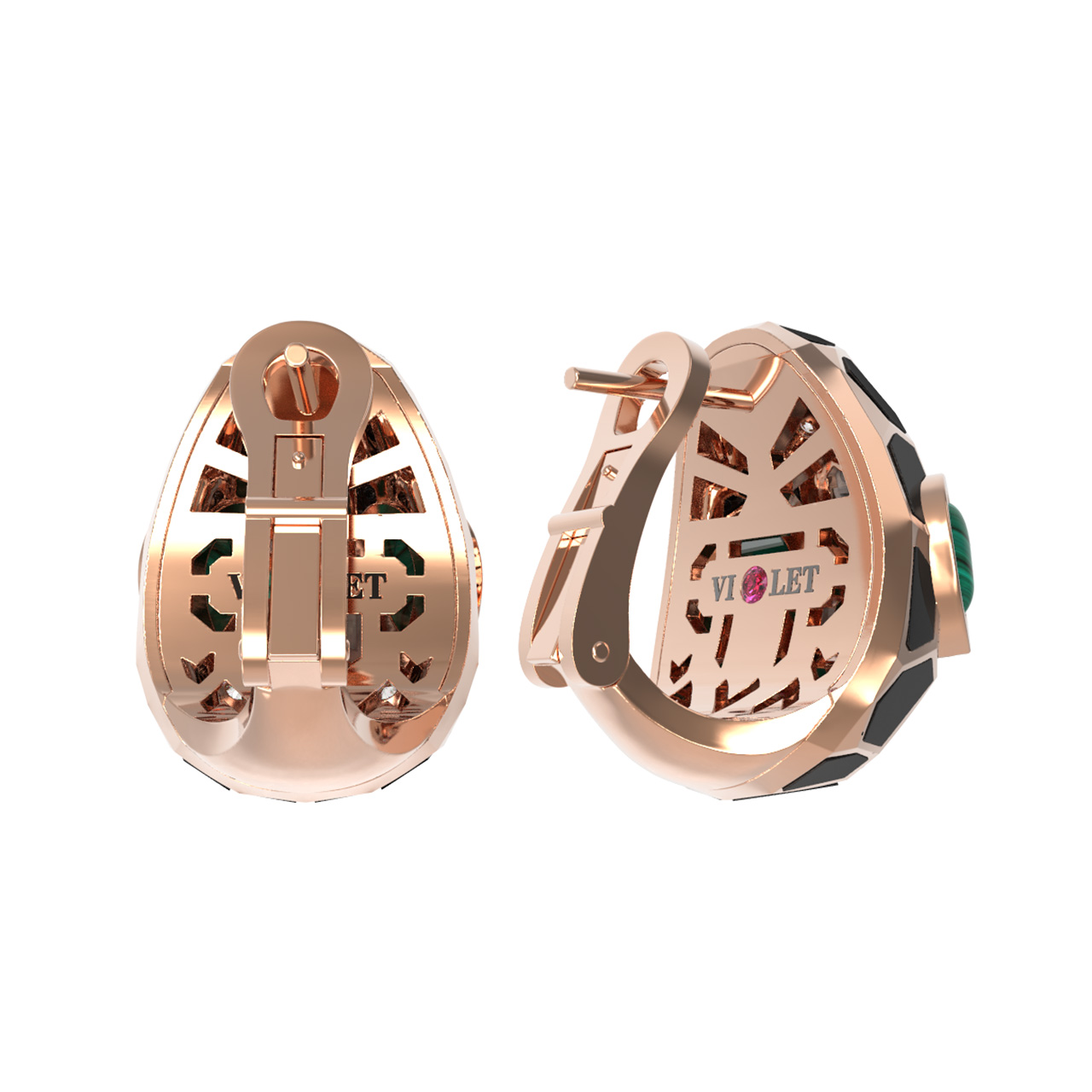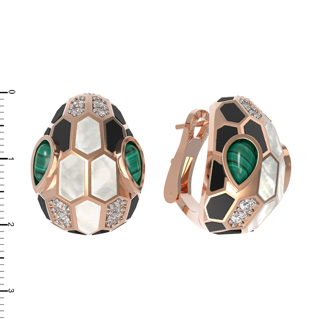 Серьги из золота c бриллиантами, рубином, ониксом, малахитом и перламутром