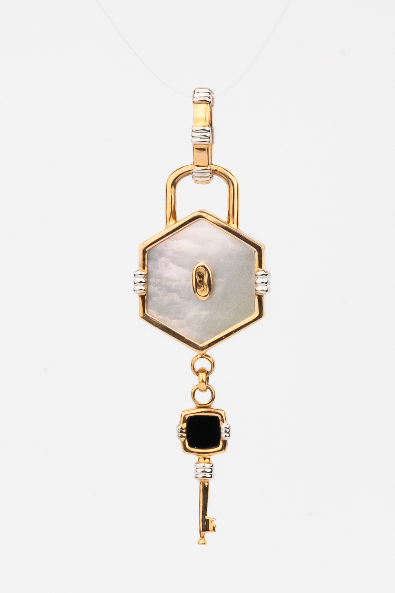 Подвеска из золота c ониксом и перламутром