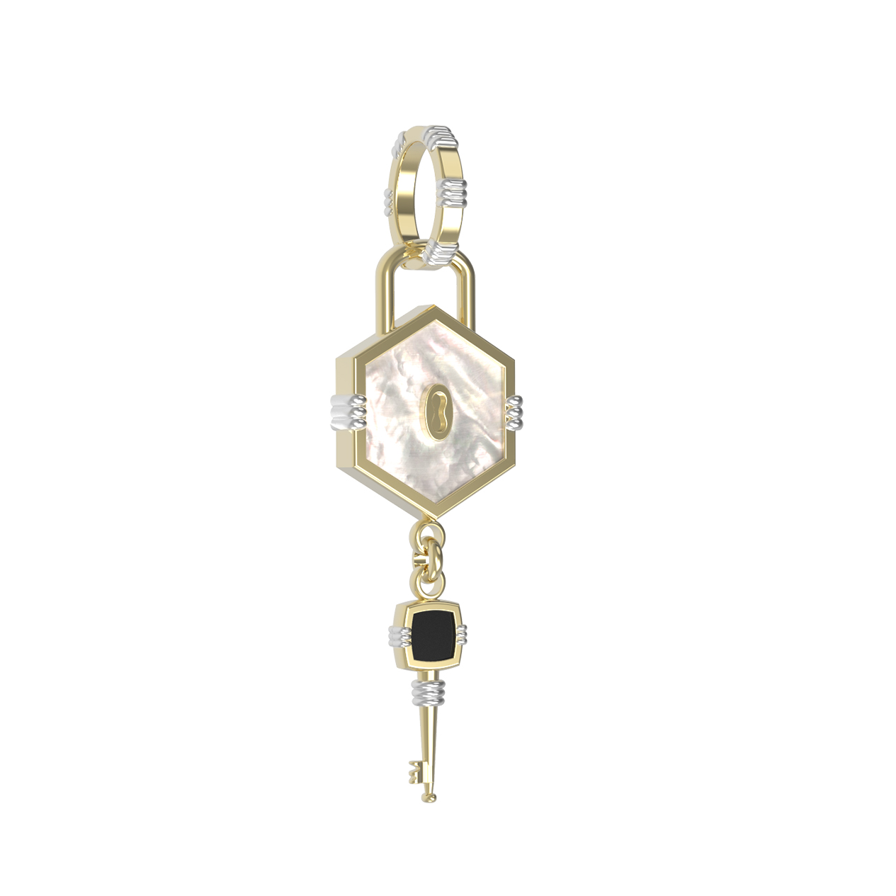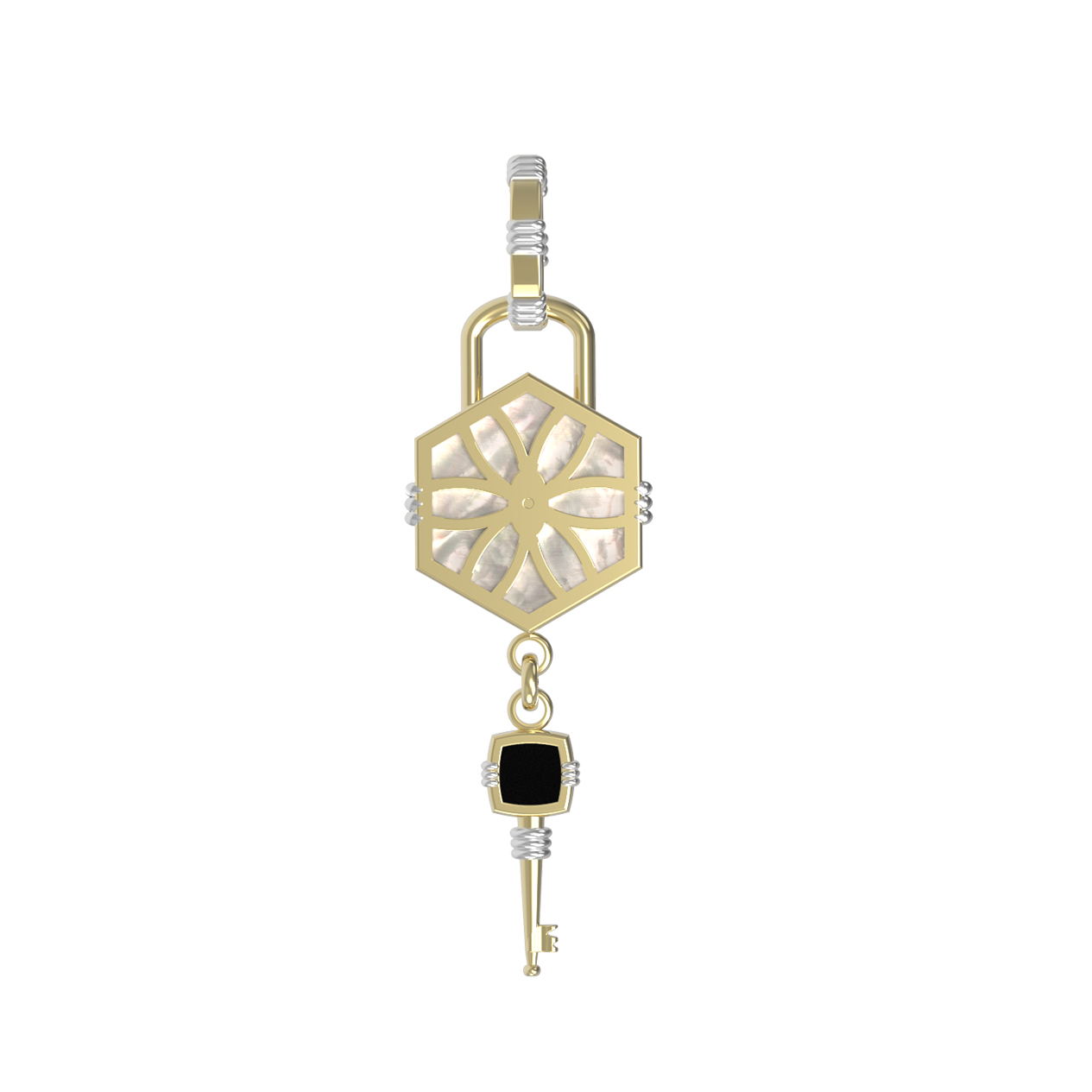 Подвеска из лимонного золота c ониксом и перламутром